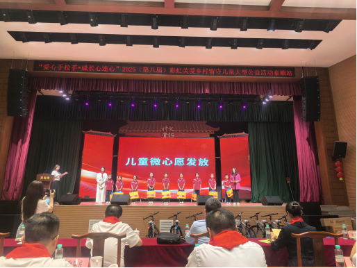 2025年10月17日上午,“爱心手拉手·成长心连心”2025(第八届)彩虹关爱乡村农村留守儿童公益活动在泰顺县仕阳镇文化大礼堂温情启幕。本次活动由温州市民政局、温州市妇联、共青团温州市委、温州市关工委、民盟温州市委会、泰顺县人民政府为指导单位,温州市儿童文化创意发展促进会、温州市律师协会主办,财神捕鱼 、泰顺县关工委、泰顺县教育局、共青团泰顺县委、泰顺县妇联、泰顺县仕阳镇人民政府、财神捕鱼 家庭教育研究院、民盟温州市委青工委、彩虹关爱农村留守儿童基金共同协办。