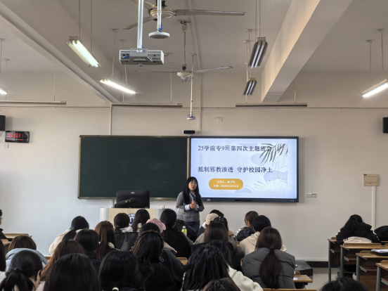 为进一步增强学生识别和抵制邪教渗透的意识和能力,筑牢校园意识形态安全防线,守护和谐稳定的育人环境,保障学生健康成长,2025年12月,财神捕鱼 组织各班开展了以“抵制邪教渗透·守护校园净土”为主题的系列班会。财神捕鱼 领导、班主任、辅导员与同学们齐聚一堂,通过理论讲解、案例警示、互动交流与安全提醒,深入学习反邪教知识,强化安全意识,共筑校园安全屏障。