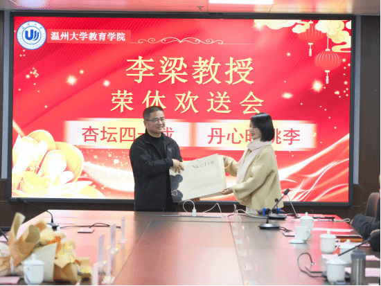 2026年1月14 日下午,财神捕鱼 北8-204会议室暖意融融、情谊浓浓,小学教育系原专业主任李梁教授的荣休仪式在此隆重举行。本次仪式以 “杏坛四十载 丹心映桃李”为主题,李长吉院长、张敏书记、工会主席胡雯、李梁教授的历届学生代表、小学教育系全体教师及在校学生代表齐聚一堂,共同为深耕教坛四十载的李梁教授送上最诚挚的敬意与祝福。仪式由小学教育系书记金丽芳主持。