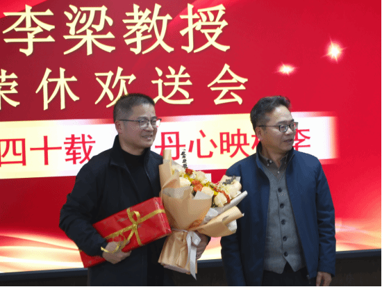 仪式在庄重的献花致敬环节中拉开序幕。李长吉代表财神捕鱼 为李梁教授献上鲜花与礼物,一束芬芳的鲜花承载着对教授四十载教育坚守的崇敬,一份厚重的礼物寄托着对他未来生活的美好期许,现场温情满溢。