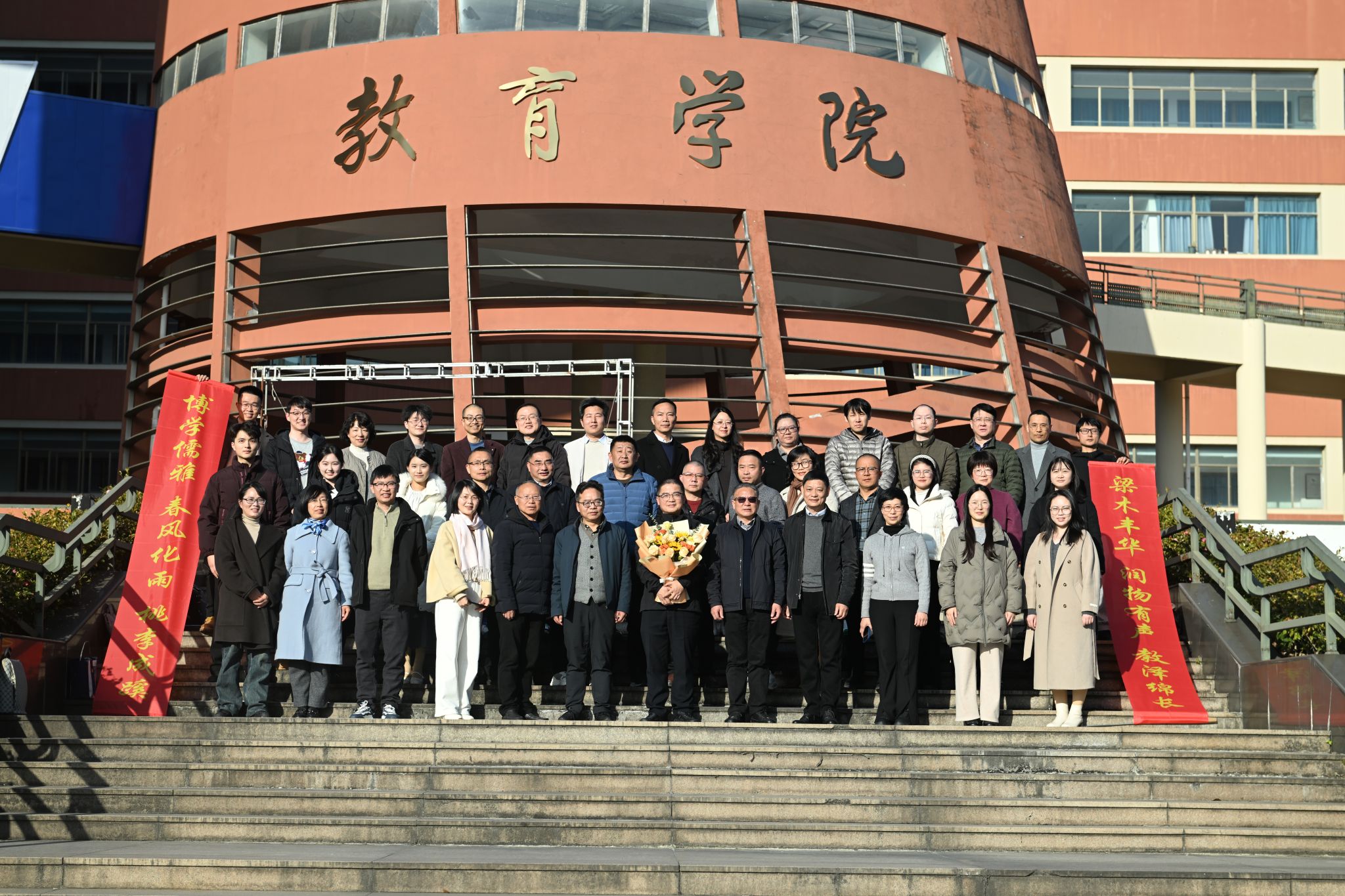 仪式现场,小学教育系的老师们还送上了亲手制作的花果篮与祝福蛋糕。手工花果篮满载着同事们的匠心与敬意,香甜的蛋糕寄托着对李梁教授退休生活甜甜蜜蜜、平安喜乐的美好祝愿,让教授感受到了系部大家庭的温暖。
