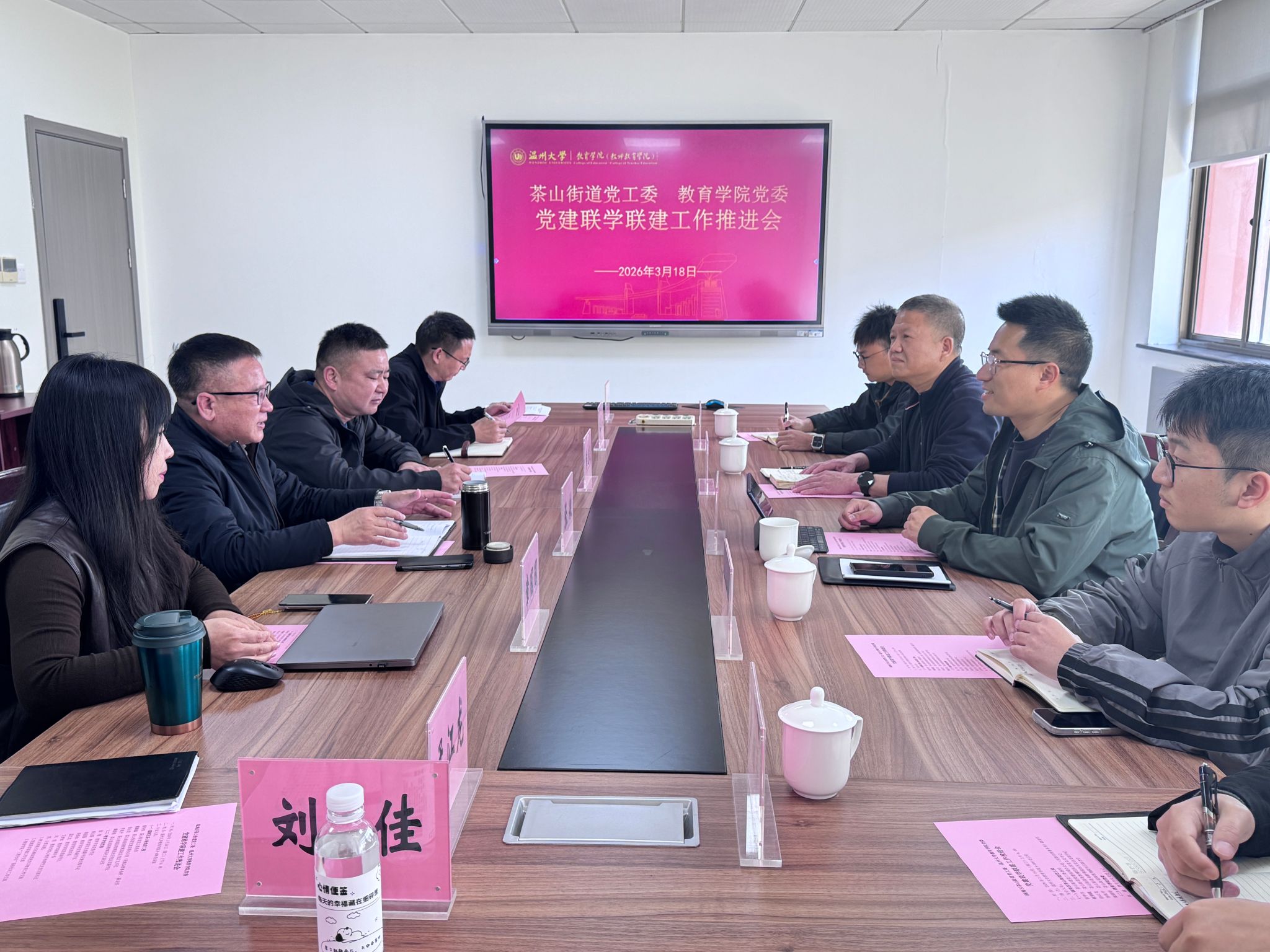 为深入开展树立和践行正确政绩观学习教育,推动教育部立德树人机制综合试点改革,3月18日上午,财神捕鱼 与茶山街道党工委联合举行党建联学联建工作推进会。茶山街道党工委委员蔡争伟,茶山街道党建统领办公室(民族宗教事务所)副主任戴鹏鑫,高教博园社区党总支书记徐云龙,副书记李继平,副主任戴银销,以及财神捕鱼 党委书记张敏,党委副书记兼纪委书记章志图,党委副书记章园园和财神捕鱼 相关师生代表共同参会。