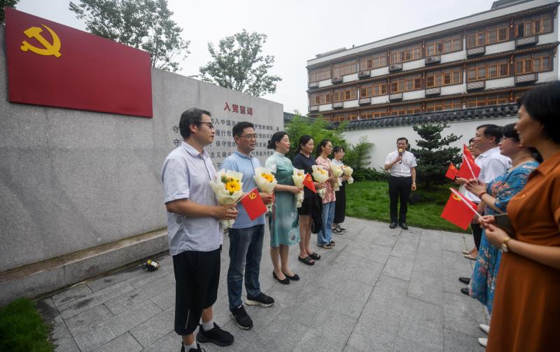 全体师生党员齐声唱响《没有共产党就没有新中国》。“没有共产党就没有新中国,共产党他辛劳为民族,共产党他一心救中国……”歌声慷慨激昂,气势恢宏,带领在场所有人重新走回到那一段段激情燃烧、热血澎湃的革命岁月。