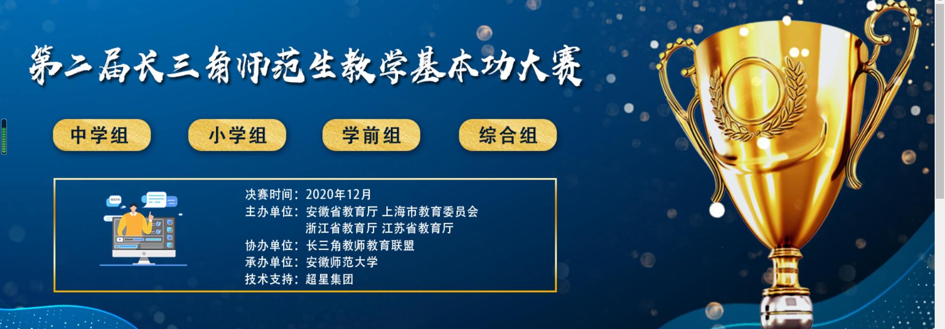 近日,由安徽省教育厅、上海市教育委员会、浙江省教育厅、江苏省教育厅联合举办的“第二届长三角师范生教学基本功大赛”圆满落幕,财神捕鱼 17级小教专业鲁璐瑶同学以及18级心理学专业陆以恒同学凭借扎实的教学基本功、巧妙的课程设计,从来自“三省一市”的众多选手中脱颖而出,分别获得小学组(数学)冠军、综合组(心理)亚军。