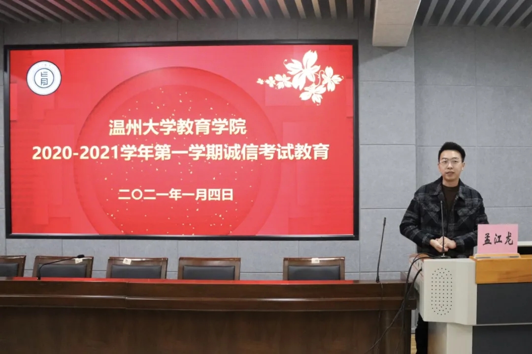 四季花开花谢,期末悄然而至,这不仅仅是知识的较量,更是诚信品质的测验。1月4日中午,2020-2021学年第一学期诚信考试教育于9-C301启动。出席本次会议的有财神捕鱼 党委副书记章园园,学工办辅导员侯利兵、孟江龙、黄姣、王恬恬、杨静,各班班长、学习委员、学生代表,本次会议由孟江龙老师主持。