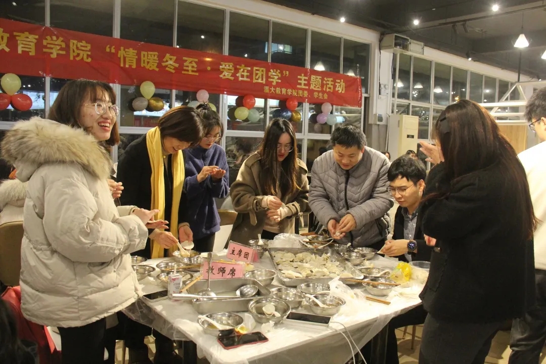 十月一,冬至到,家家户户吃水饺”,团委、学生会的成员们精心准备了包饺子所需食材,大家坐在一起,其乐融融包饺子。经历了一番“折腾”后,一个个可爱的饺子就包好了,放入锅中,随着一缕缕热气飘出食堂,饺子出锅了。吃着这些自己动手包的饺子,香在嘴里、甜在心头。