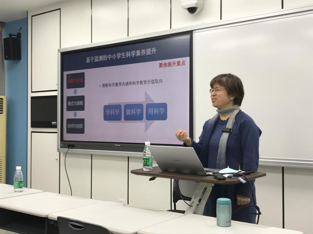讲座伊始,林静教授从监测框架、监测团队、监测工具和监测报告这四个方面娓娓道来,给大家详细介绍了国家科学教育质量检测工作概况。以“素养”内涵的不断丰富为导入,林教授细心讲解了数据驱动的科学素养提升策略与相关提升项目。她强调指出,监测只是手段,促进基础教育质量提升才是教育工作者的研究目的;通过质量检测来摸清现状,找准问题才能有效地问责改进。