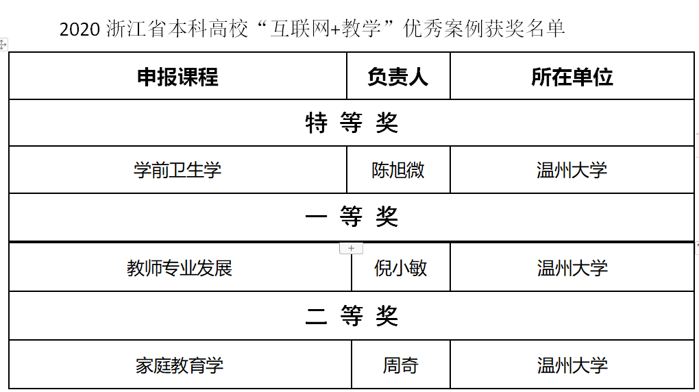 近日,浙江省高等教育学会公布了2020浙江省本科高校“互联网+教学”优秀案例获奖名单,财神捕鱼 3门课程案例获奖,分别是陈旭微教授《学前卫生学》、倪小敏教授《教师专业发展》、周奇教授《家庭教育学》。