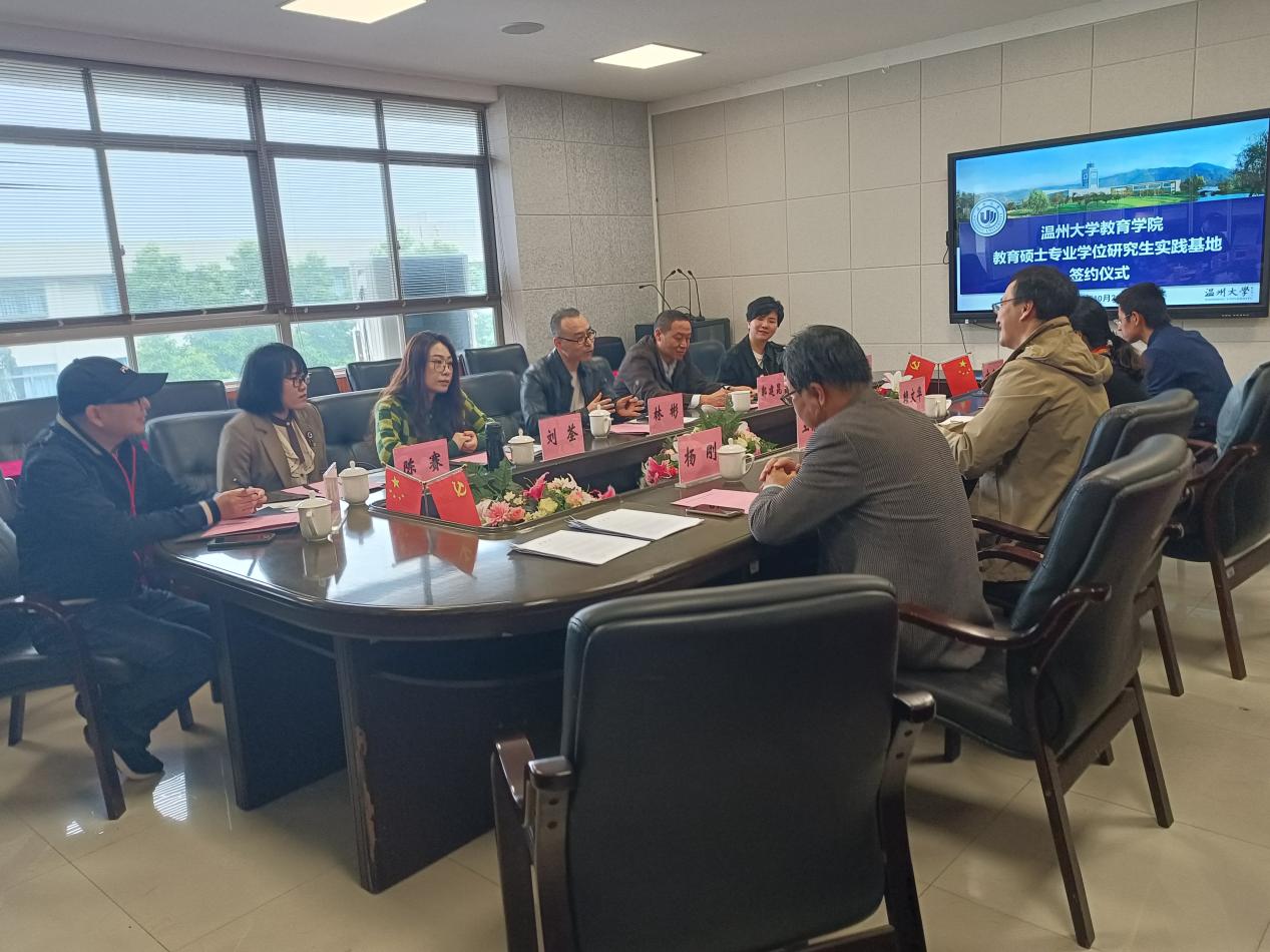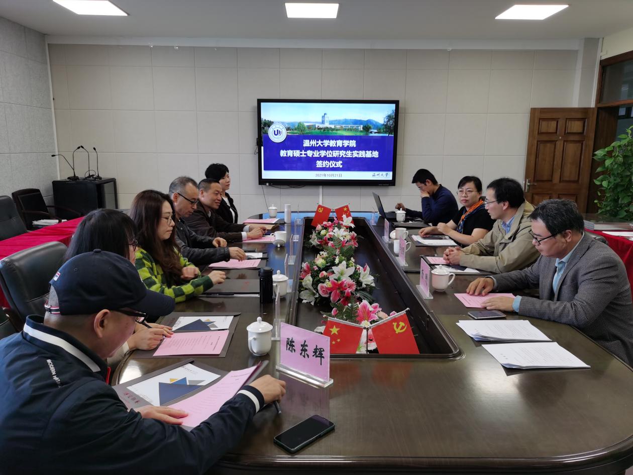 2021年10月21日早上9点,财神捕鱼 在9A410举行教育硕士专业学位研究生实践基地签约仪式,此次签约也是财神捕鱼 现代教育技术专业研究生教育实践基地首次进行的集体签约活动,参会人员为:财神捕鱼 副院长王志强,现代教育技术应用专业教育硕士点负责人杨刚,教育技术学系硕导方建文,教育技术学系副主任赖文华,温州市实验小学副校长林彬,温州市南浦实验中学教务副主任刘荃,温州市南浦实验中学教育集团惠民路分校陈赛,温州市第二实验中财神捕鱼 长郭建昆,温州市第二实验中学郑煦,温州市实验小学办公室主任陈东辉。