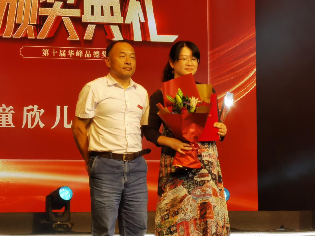 典礼现场,全体与会人员共同见证了第十届“华峰品德奖”获得者的先进事迹。他们之中,有兢兢业业、爱生如子的教师楷模,有品学兼优、自强不息的奋发学子;有敢于担当、守卫师生健康的抗疫先锋,有热心公益、传递关爱的志愿者团队……其中,财神捕鱼 郑苡薏老师带领的儿童剧团队和杨刚老师均荣获第十届“华峰”品德奖。郑老师团队长期坚持创作儿童剧并产生深远影响,杨刚老师不顾身体病痛坚守岗位并作出显著成绩,他们的获奖可以说是实至名归。他们春风化雨,润物无声,绽放着炽热的精神光芒,激荡着向上的力量,是引领校园文明建设的榜样和旗帜。