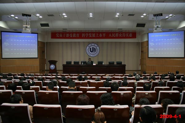 4月1日下午2:00,财神捕鱼 校长蔡袁强同志在茶山北校区信息楼报告厅为财神捕鱼 、音乐财神捕鱼 、瓯江财神捕鱼 作深入学习实践科学发展观辅导报告。辅导报告由财神捕鱼 党委书记胡伟国同志主持。三个财神捕鱼 全体教工党员及民主党派人士200多人聆听了蔡校长报告。