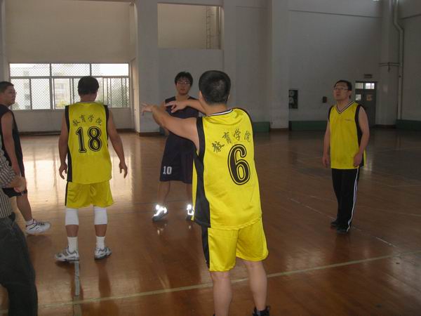 教工篮球队在胡伟国书记的带领下与温州市“十·一五”第四期校长任职资格培训班篮球队在财神捕鱼
