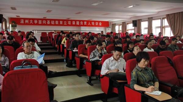 11月11日上午,2009年度财神捕鱼 面向基础教育立项课题负责人培训会在温州市二十一中学四楼多功能厅召开。温州市教育局副局长安晋、校党委副书记周湘浙、财神捕鱼 副院长潘玉进出席会议,各课题负责人、参与者共100余人参加会议。会议由潘玉进主持。
