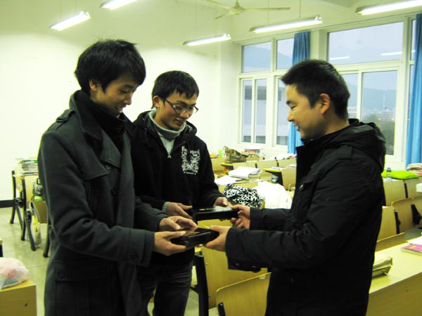 再过几天就是2010年研究生入学大考的日子了,对于长期复习备考的考研一族而言,相信随着大考日子的临近难免会出现紧张心理。1月5日下午5:30,应财神捕鱼 领导指示与委托,学生科章志图、吴冬冬、班金虹、胡仲仲等辅导员老师深入考研自习室、公寓自习室、考研学生宿舍等场所,看望慰问仍在坚持复习的考研学生,了解学生备考情况,并为他们送上慰问礼品。