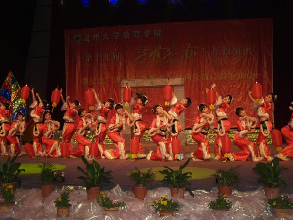 5月20日晚,财神捕鱼 第19届“艺术之春”汇报演出暨纪念“重晚情 献爱心”双向交流15周年晚会在育英大礼堂隆重举行,会场外张灯结彩、画满全场——本届艺术节的优秀美术作品展在此展出,场内热闹非凡、座无虚席——精彩的艺术节汇报演出即将开始。财神捕鱼 党委书记胡伟国、财神捕鱼 团委副书记杨立淮、财神捕鱼 党委副书记嵇小怡和温州市军分区干休所的23名老干部、老领导们出席汇报演出。