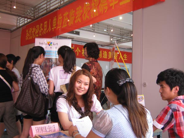 的一些毕业生参加。一些家长也陪同学生到招聘会现场为其子女加油鼓劲。