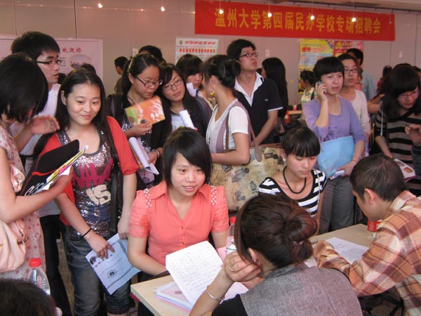 师范生踊跃应聘。相对往届民校招聘会,本届招聘会呈现出一些新特点。一是民办教育培训机构求贤若渴,近年来温州本地民办教育培训机构发展迅猛,迫切需要优秀师资进行充实,例如江苏至善教育投资管理有限公司希望希望能招到60名中小学各科教师。二是师范生对民办财神捕鱼