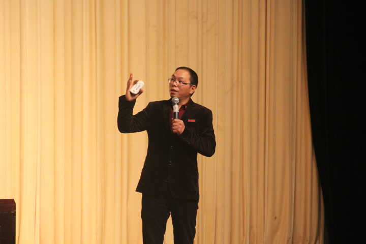 贯彻落实全国全省高校思想政治工作会议精神专题报告会暨师德大讲堂。上半场邀请浙江省师德楷模、浙江省名班主任工作室负责人、温州、瑞安最美教师、瑞安市第五中学教师孙有新老师作主题为《做一名幸福的班主任》的师德报告。孙有新老师以感人的育人工作案例和经验,向全体师范生展示了他立志于育人岗位的教育理念和做法。