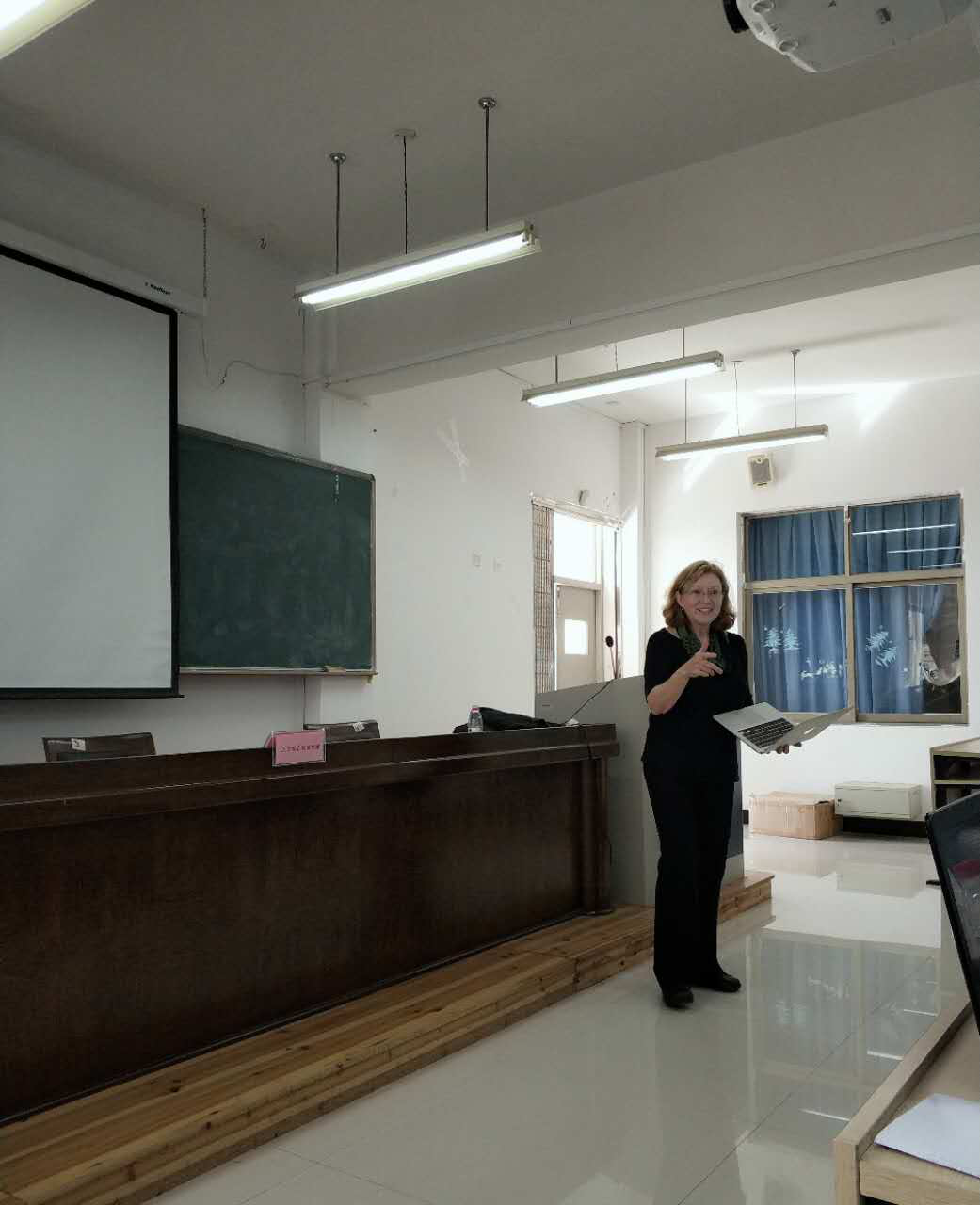 2017年10月10日下午1:30,在南校区9号楼C301举办“Curriculum Reform and Leadership(课程改革和领导力)”主题讲座。这次系列讲座的主讲嘉宾为美国阿拉契州立大学Dr.Sara Zimmerman ,Dr.Ward Zimmerman和Rob Sanders .本场讲座的主讲人为Dr.Sara Zimmerman,此次活动由教师财神捕鱼 主办,陈宥辛老师主持,讲座吸引了全校众多师生前来聆听学习。