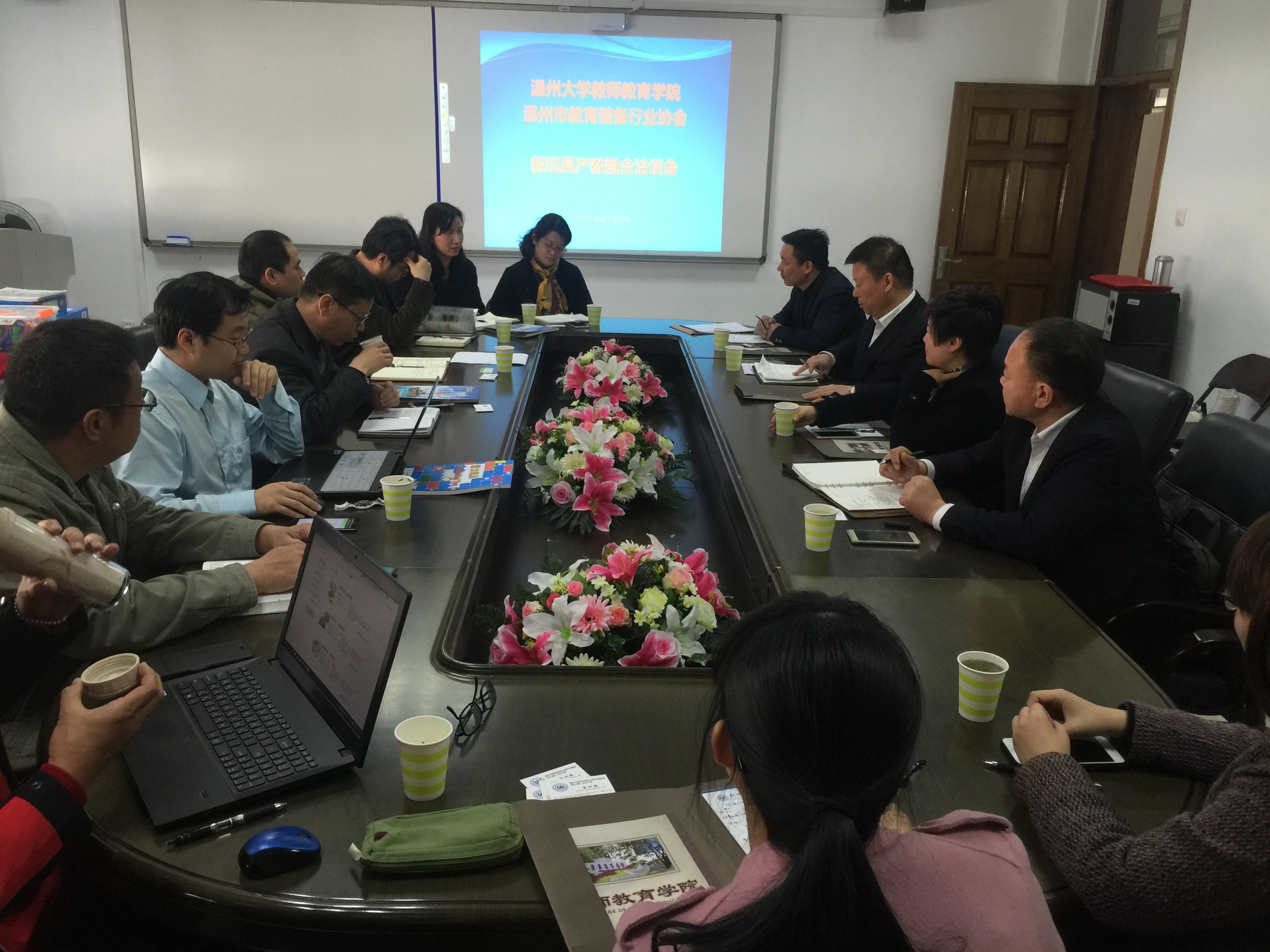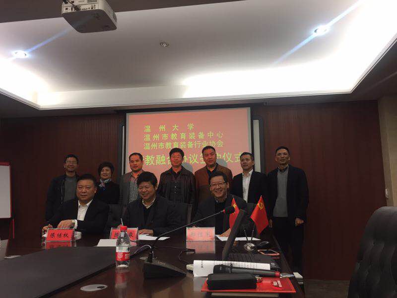 融合各学科、专业力量,结合区域经济社会与教育发展的需求,实现协同育人与协同创新,是教师财神捕鱼 “十三五”发展规划之“协育”计划与“融域”计划的基本思路。针对温州(永嘉)作为全国教玩具之都与教玩具产销基地的区域特色与财神捕鱼 专业、学科的契合性,财神捕鱼 早在2016年下半年就开展了相关调研、咨询与洽谈工作。2016年11月29日,郑信军院长与杨立淮书记代表财神捕鱼 赴永嘉育才控股集团参加了包括多家主力企业在内的多方研讨会,并与温州市教育装备中心、温州市教育装备行业协会签署了三方战略合作协议。协议涉及共建教育教学实践基地、共同研发教玩具产品、共同开发教玩具产品的教育应用、共同开展学术与教学交流活动等多项内容。