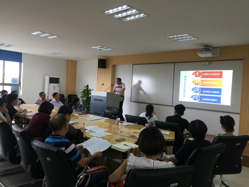 在南校区9C401会议室举行2017-2018学年第一学期行政人员工作会议暨行政支部“两学一做”主题党日活动。杨立淮书记、杨丽君副书记及全体行政人员出席了本次会议。会议由行政支部书记黄玮主持。