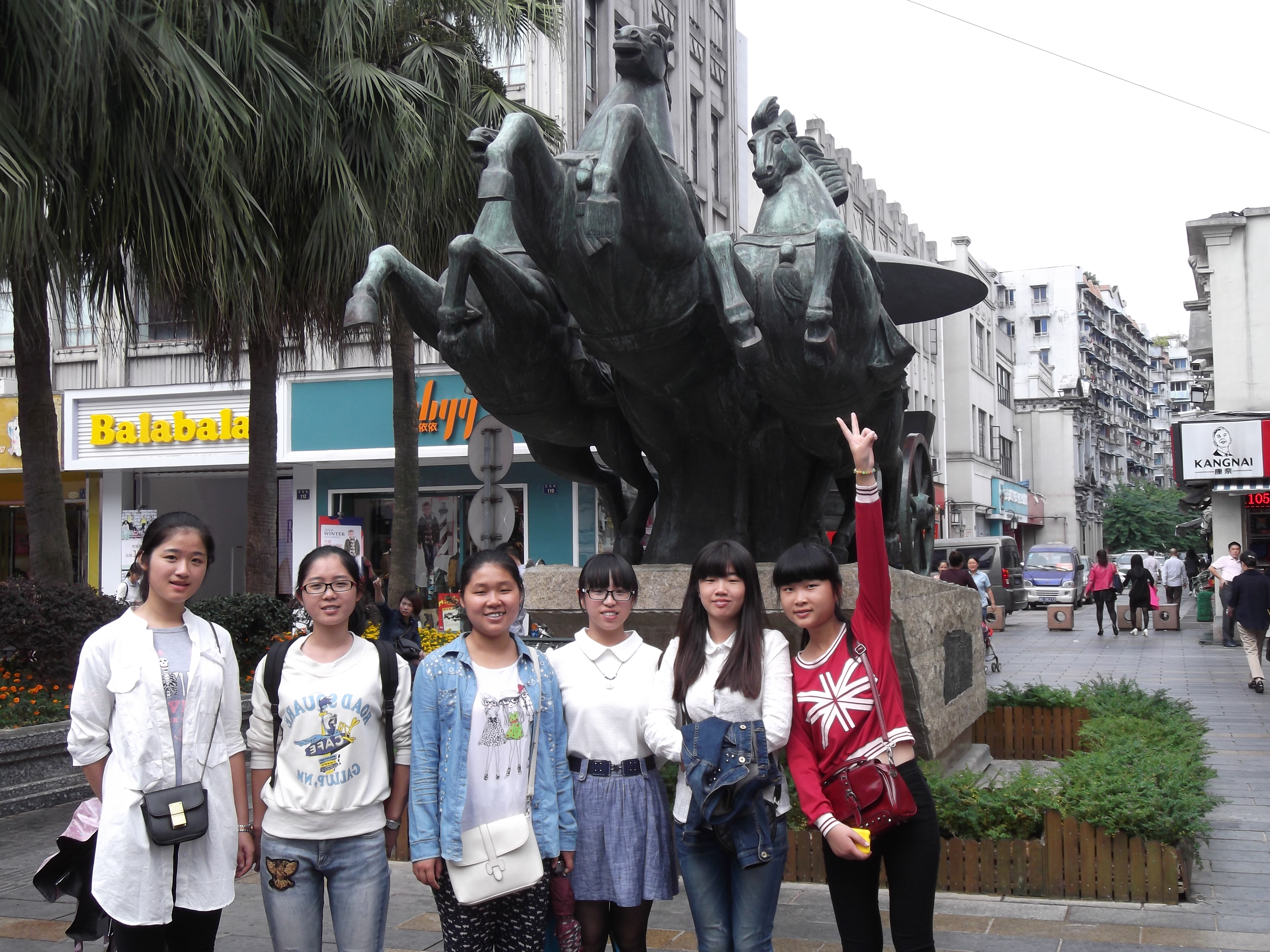 这一路,最吸引同学们眼球的便要数高大的榕树。在江心屿、南塘街、百里坊和墨池公园里,同学们时时可睹大榕树的风姿:两三个人都合抱不了的树干,像绽放的烟花一样动人的树冠。它们默然伫立,笑看百年温州的沧桑巨变。如今的温州,到处都矗立着高楼大厦,唯有大榕树静静地立在柏油马路的中央,见证着温州的发展。