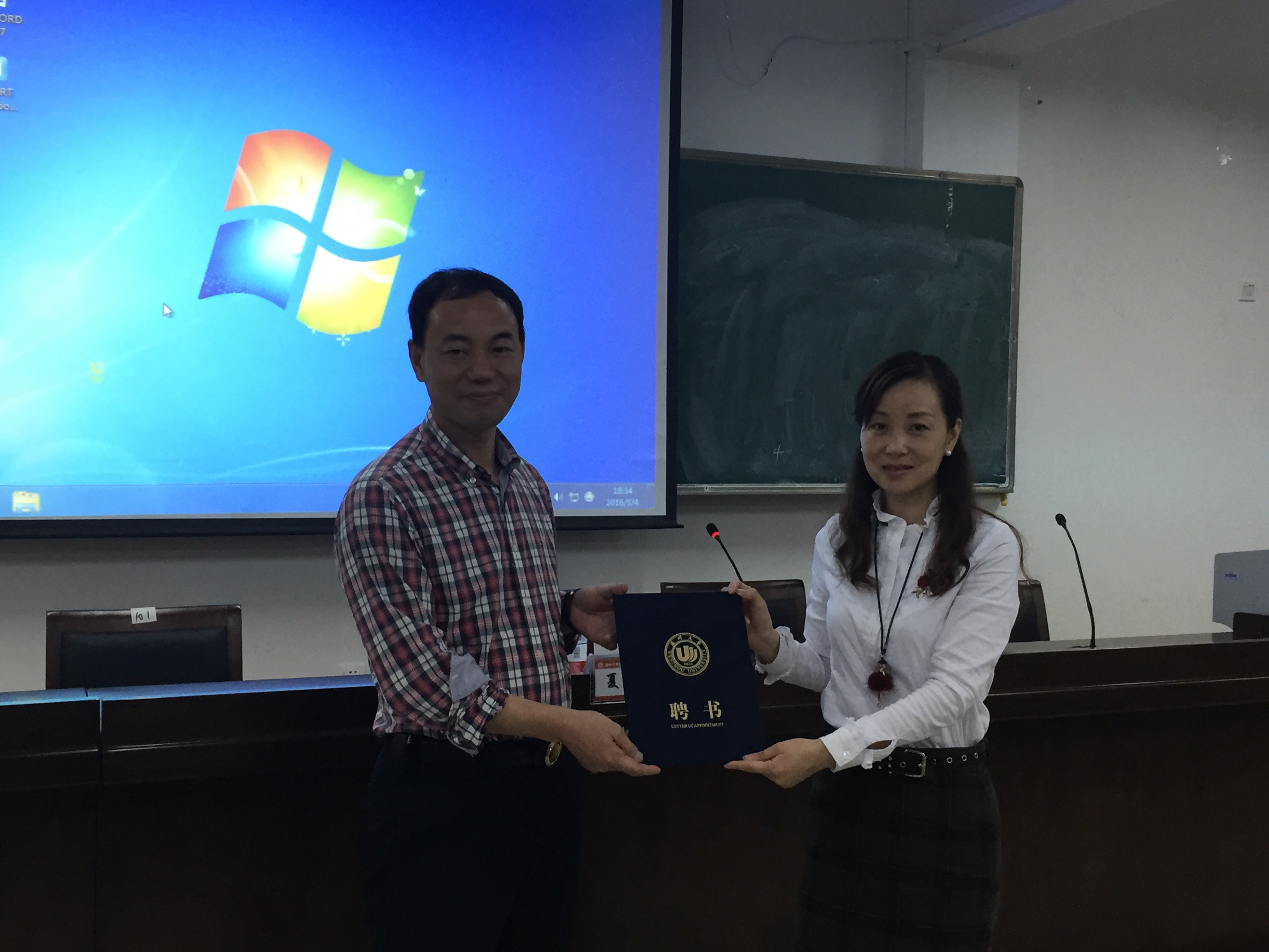 党总支副书记杨丽君老师为夏科长颁发聘书,聘请夏盛良老师为财神捕鱼