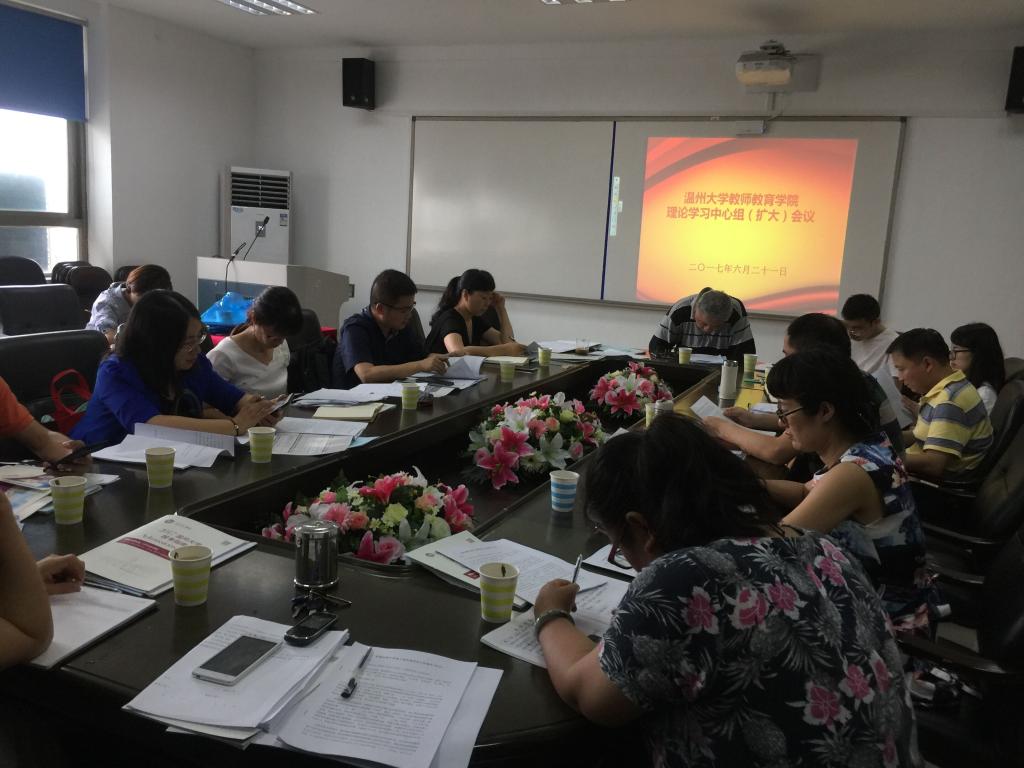 6月21日下午,财神捕鱼 在南校区9A410会议室召开理论学习中心组(扩大)会议,财神捕鱼 领导班子、党总支委员,各系(中心)主任、书记、副主任以及各科室负责人参加,会议由杨立淮书记主持。