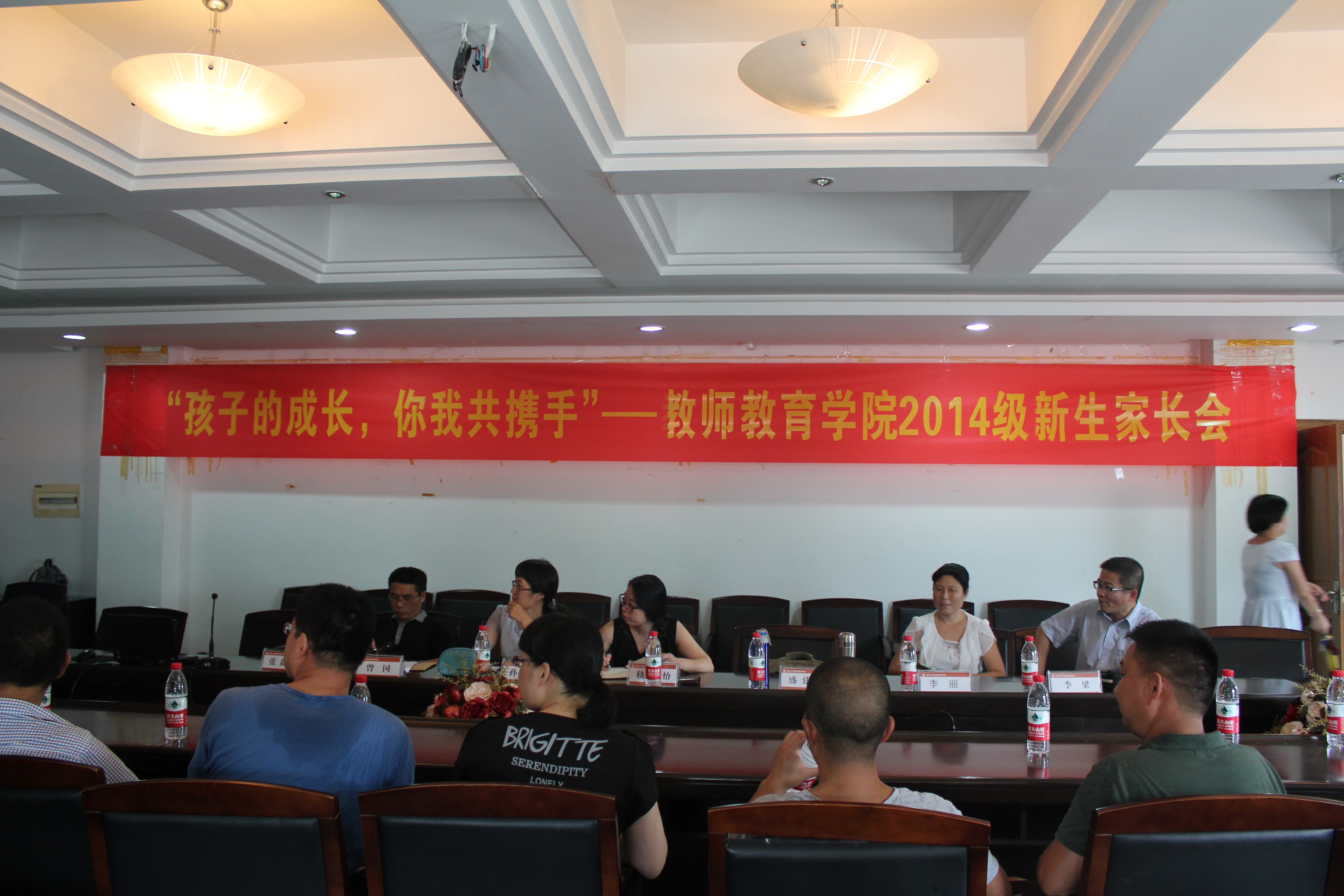 2014级新生家长会。出席此次会议的有孙芙蓉副院长、嵇小怡副书记、各系主任、新生班主任、全体辅导员和来自各个专业的2014级新生家长。