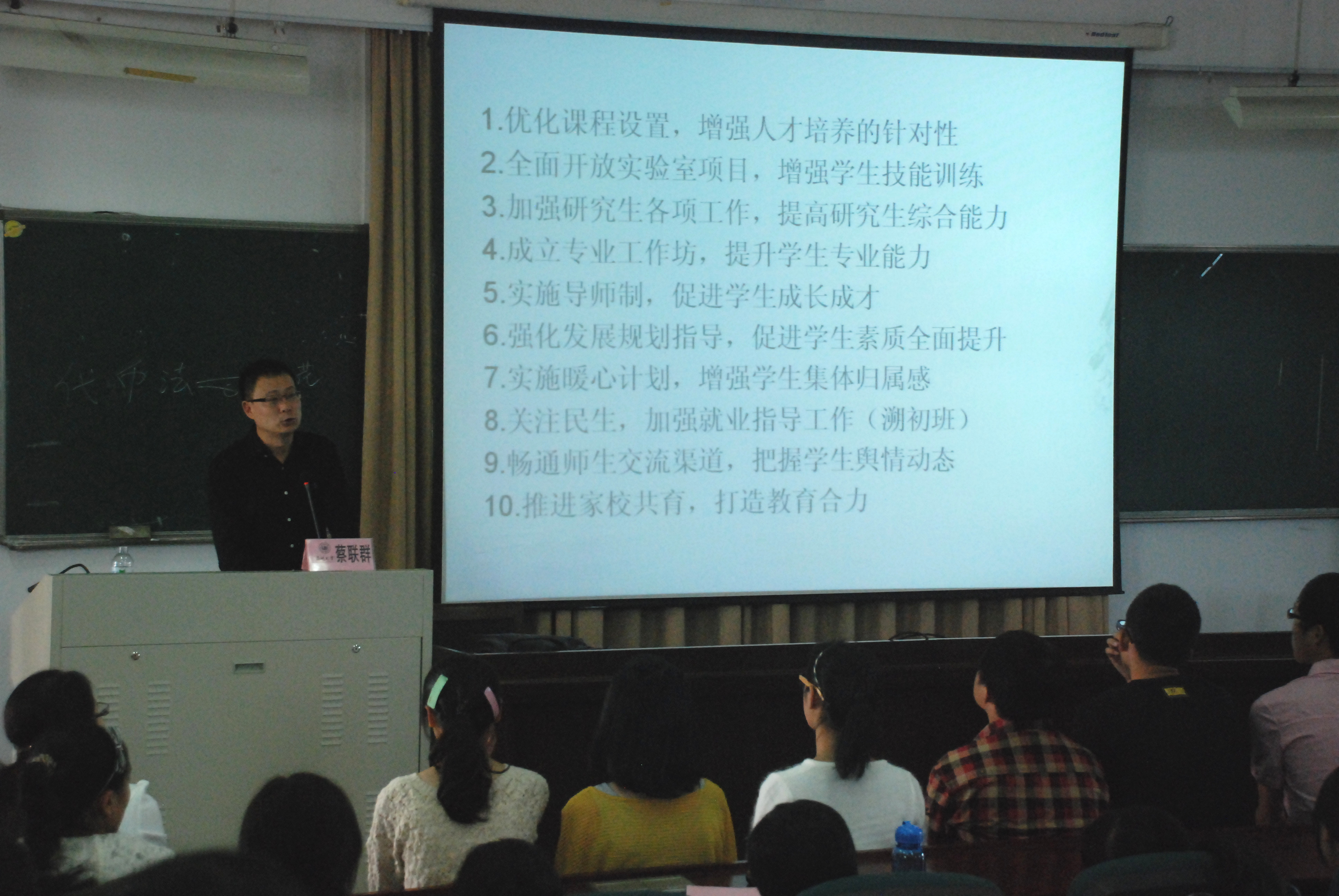 的十大“惠生工程”,台下不时传来幸福的笑声。第三部分绚丽青春的大学,蔡书记结合自己的大学经历给同学们讲了“我们的大学生活”,为同学们的大学扬帆导航!