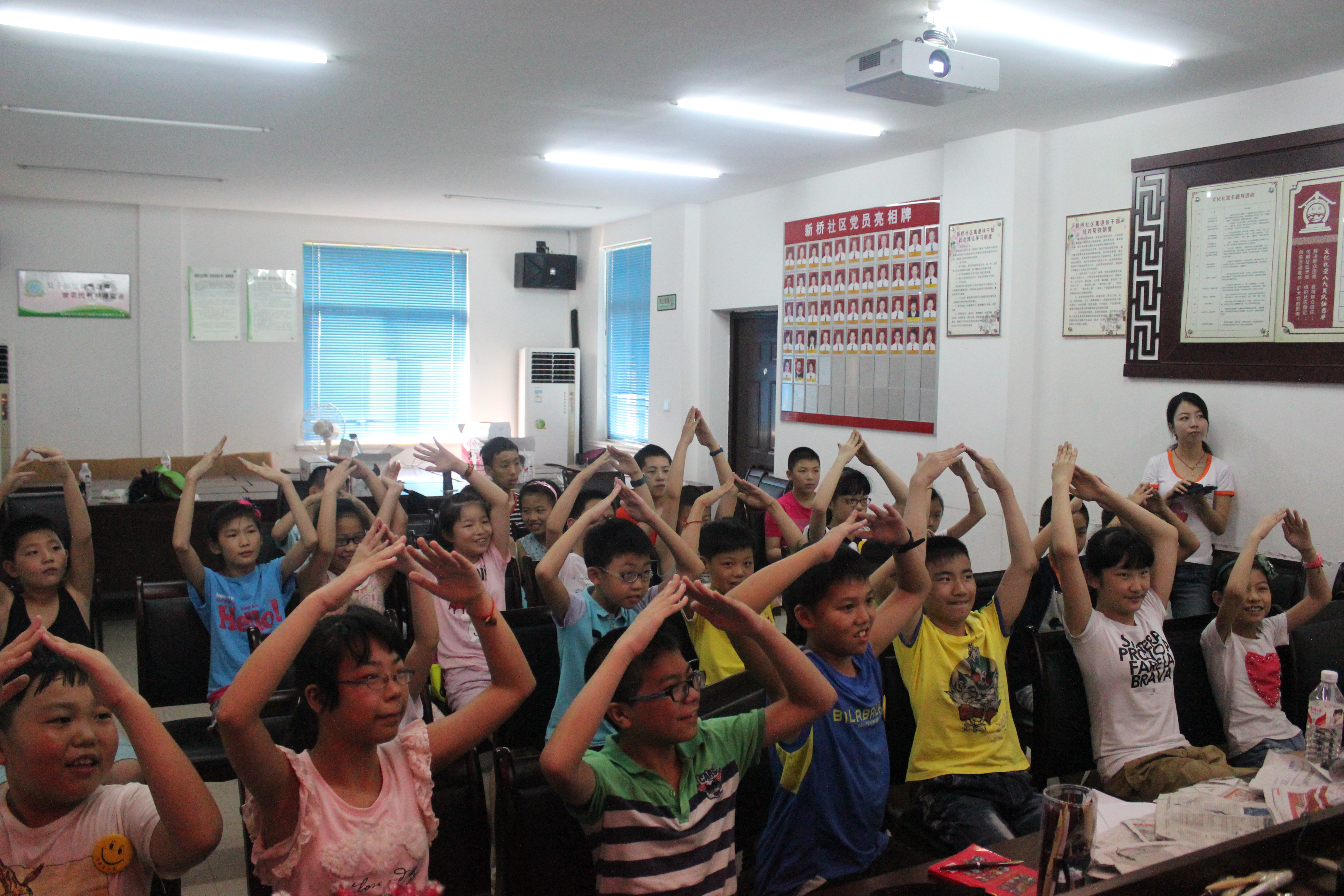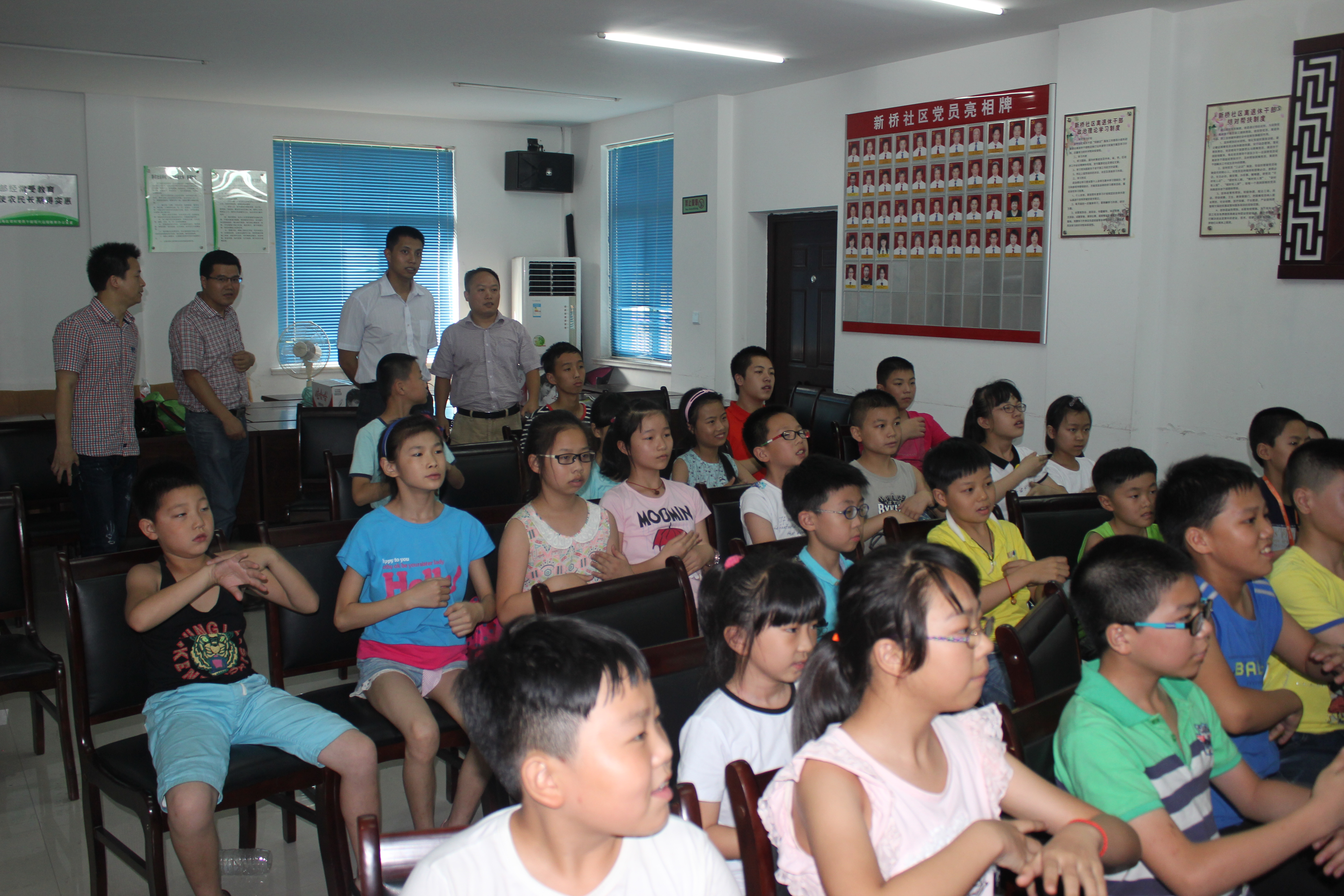 社区服务活动之青少年情商夏令营实践队在新桥社区开展夏令营活动。温州市团市委副书记沈醒、学少部部长池腾飞、财神捕鱼