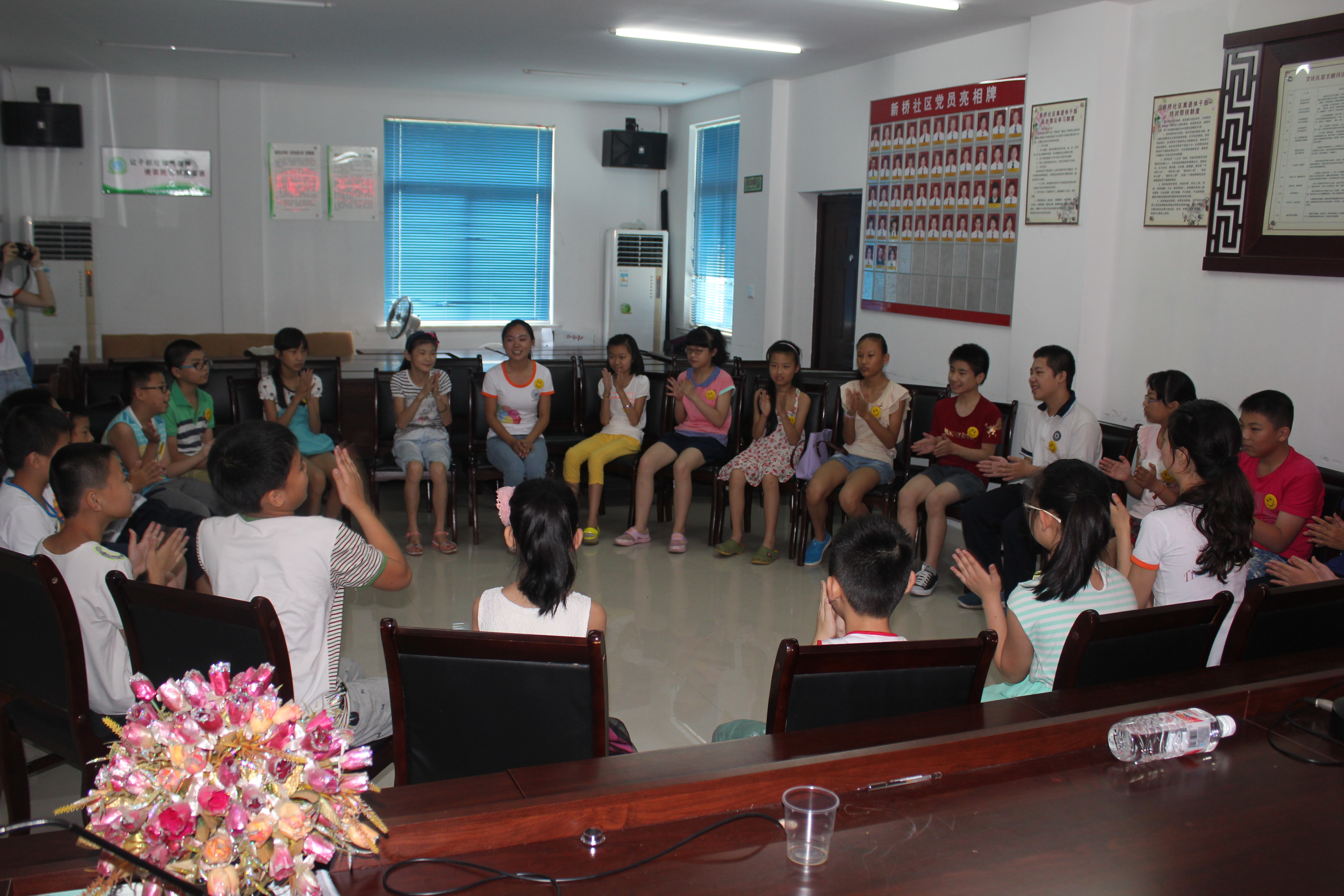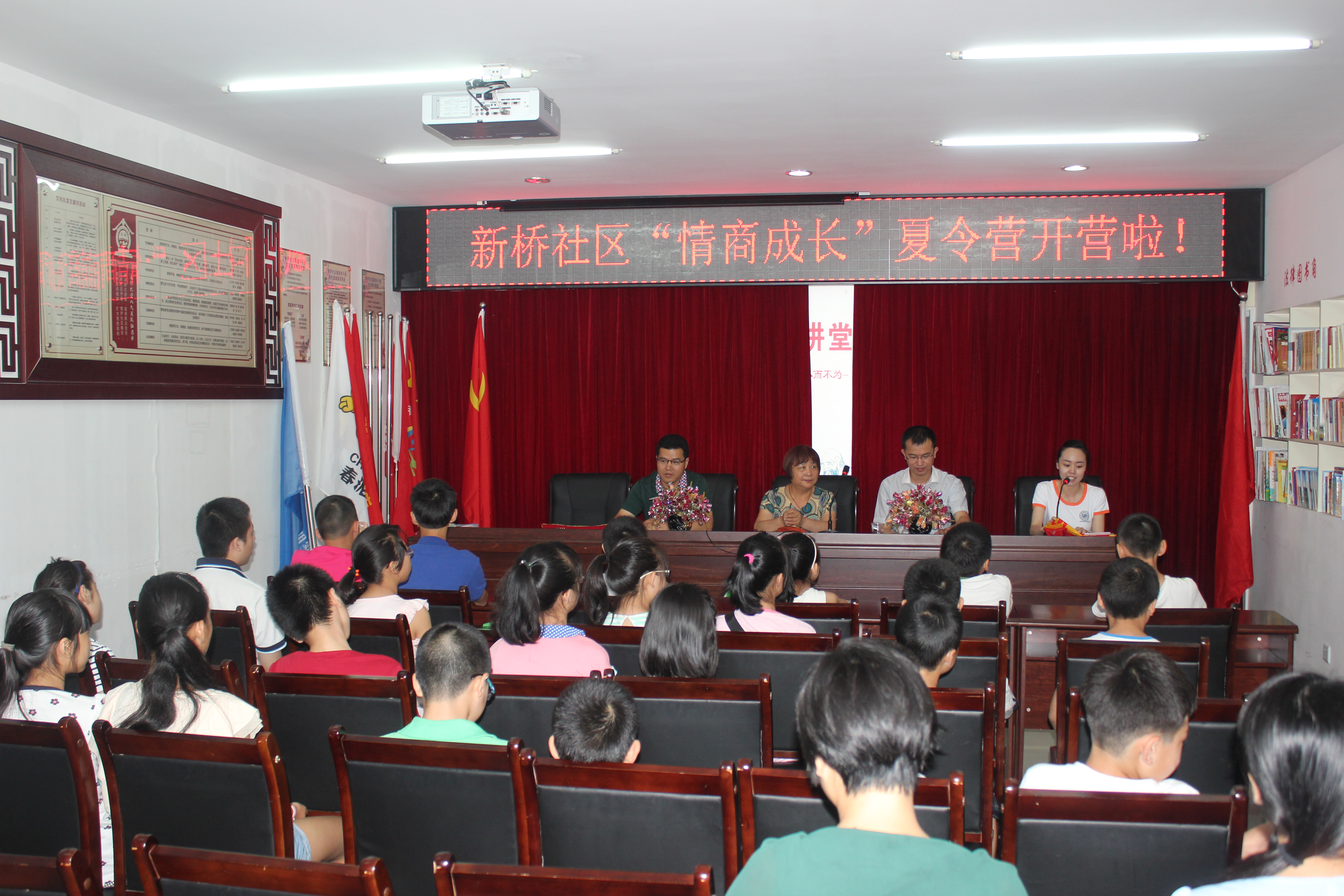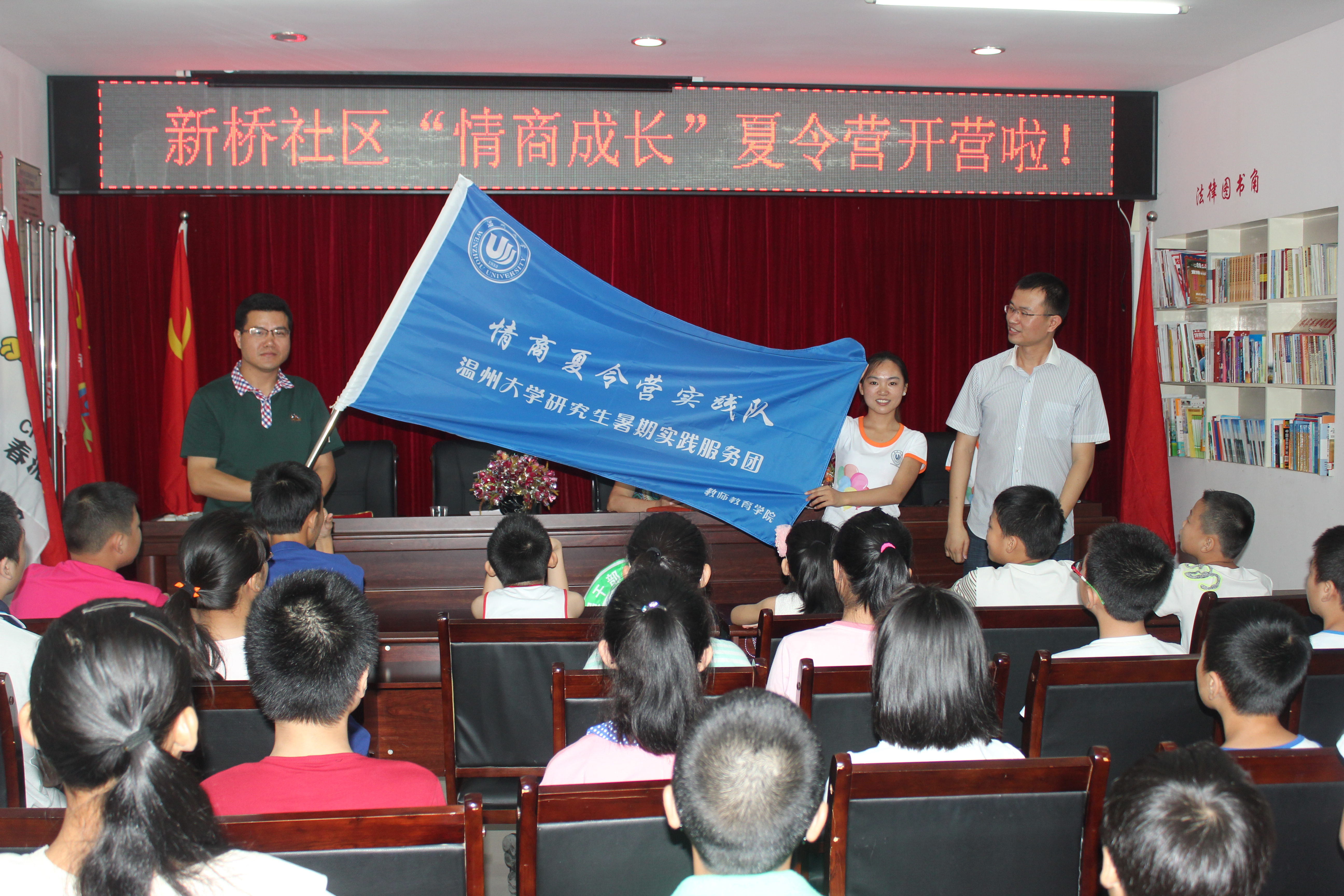 情商夏令营实践队和新桥社区共同主办的“情商成长夏令营”正式开营,团市委学少部部长池腾飞、新桥社区主任许信月、财神捕鱼