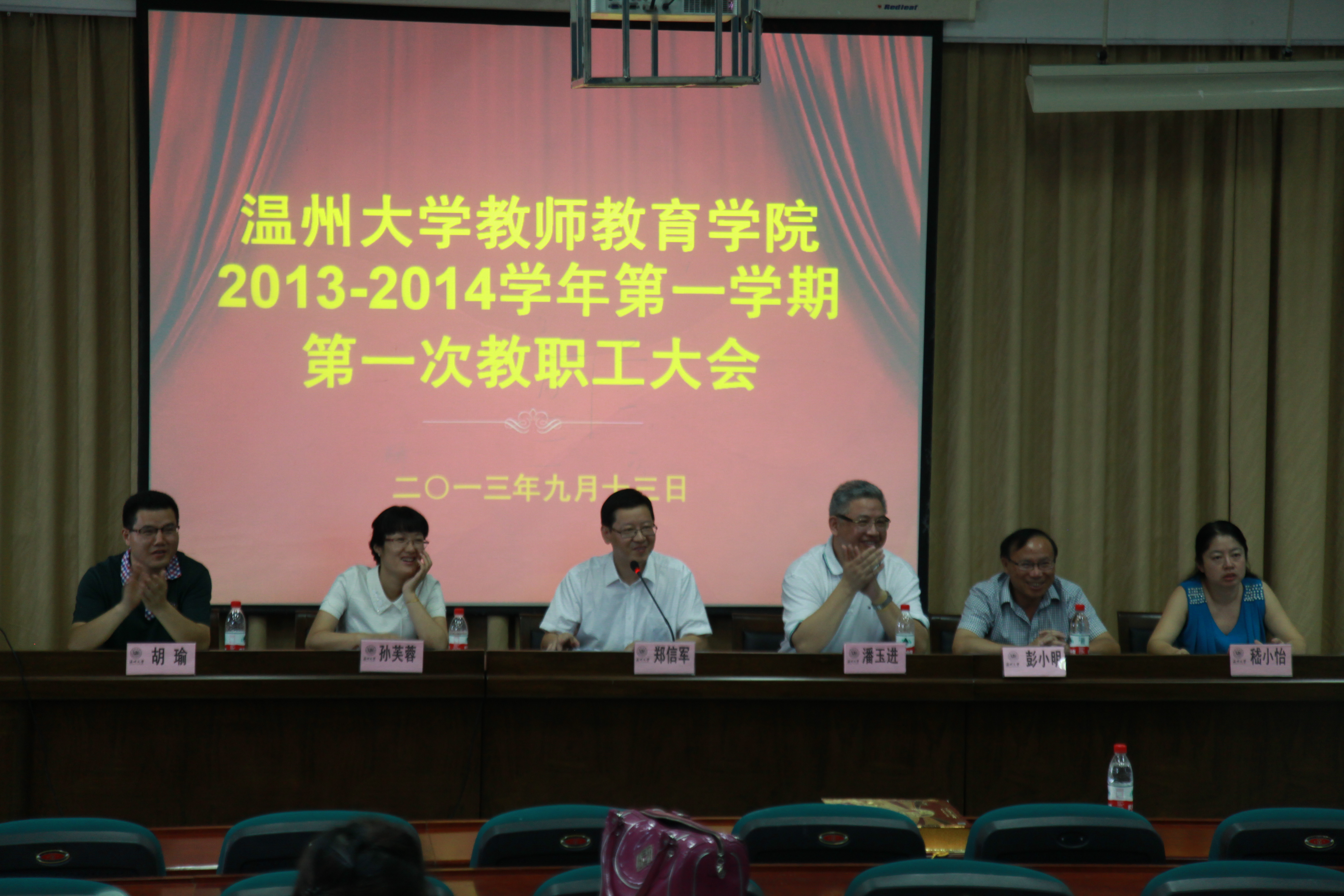 郑信军院长讲话,他向在暑期中坚持工作的老师们表示衷心的感谢,并向大家通报了财神捕鱼 2013届毕业生的就业数据及新生录取情况。