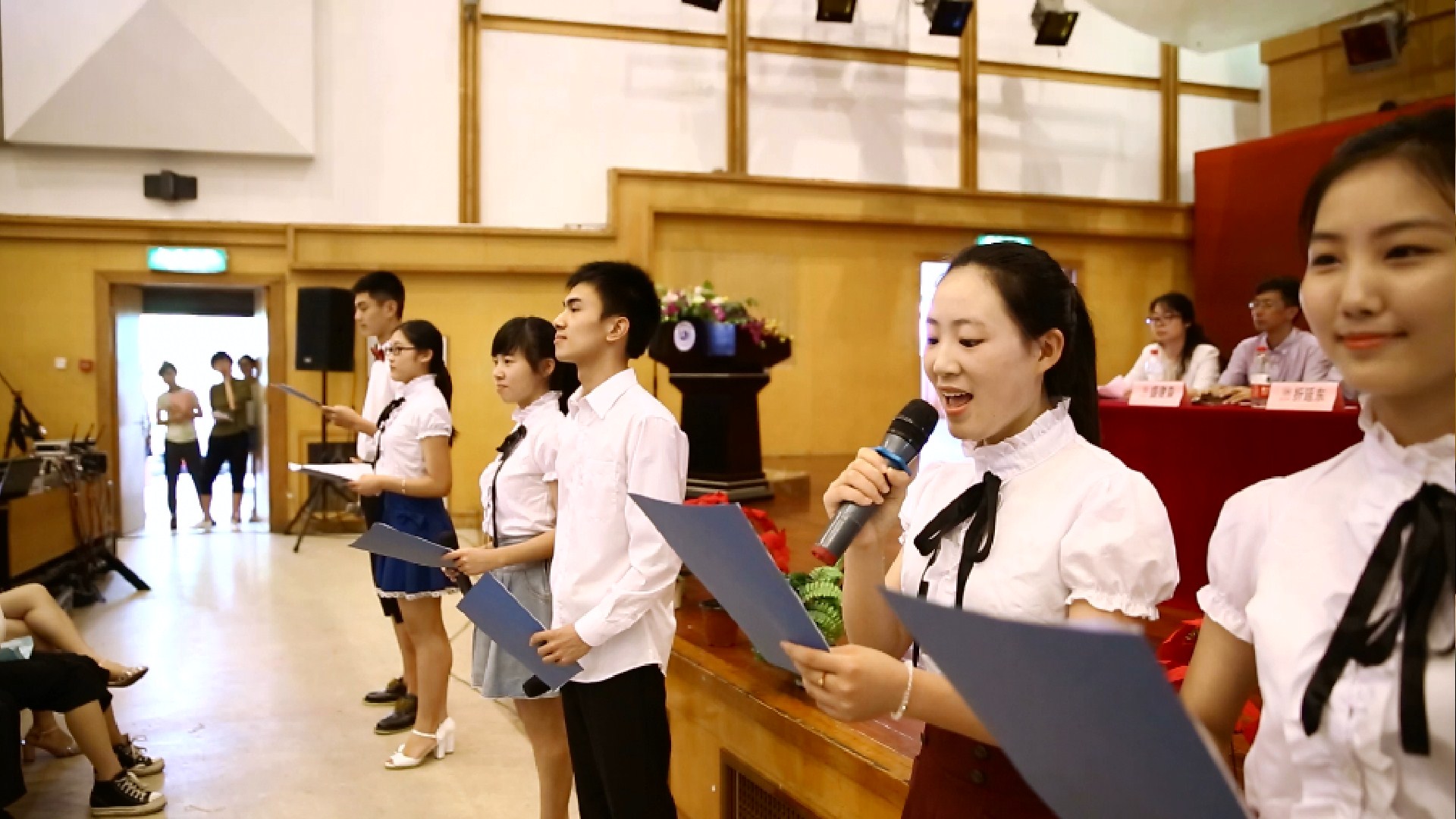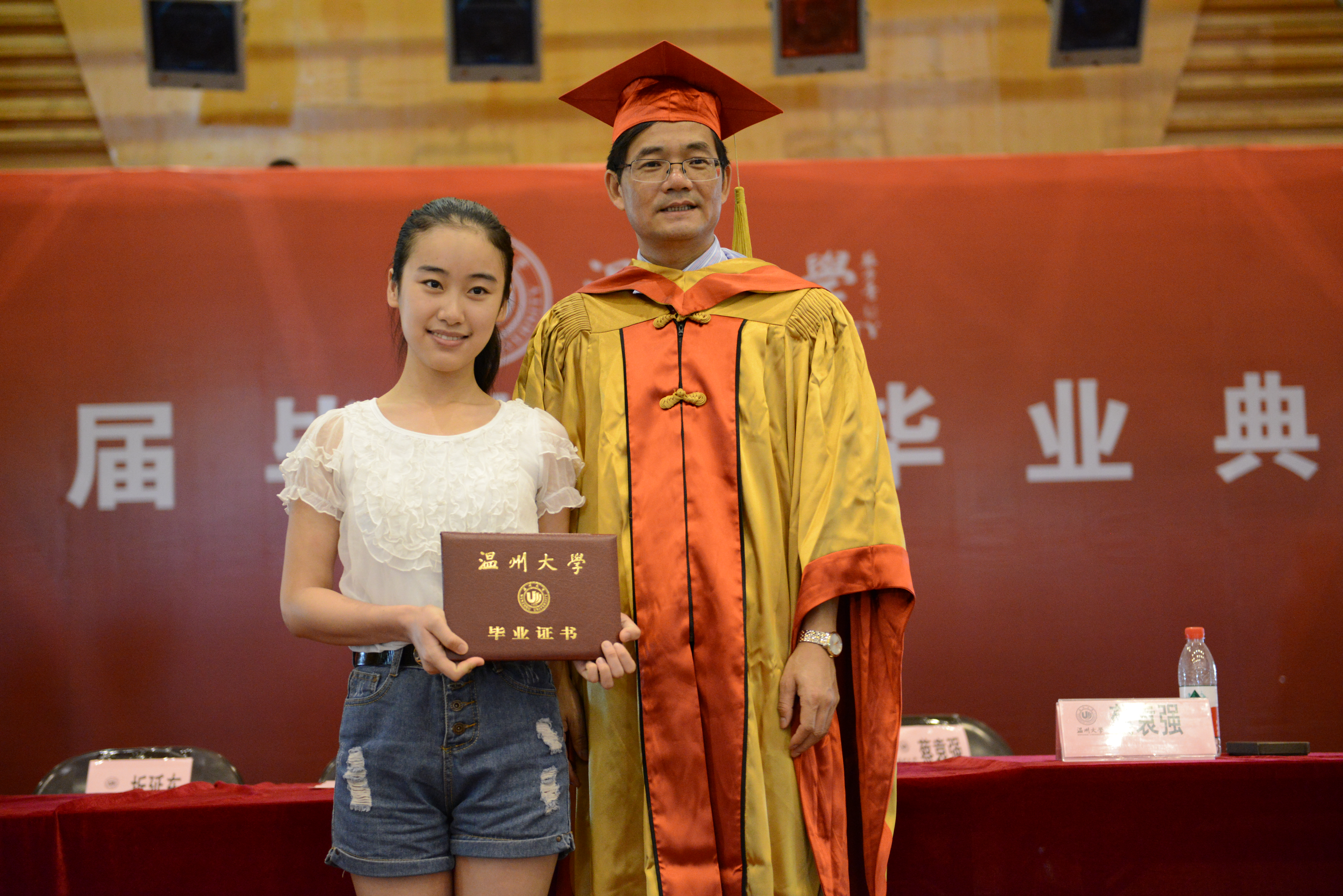 紧接着,在校的学生们以朗诵的形式带给毕业生一份集体祝福。在毕业生孙林杰、金高苑的领誓下,毕业生铿锵宣誓:“我愿秉承‘求学问是,敢为人先’校训,修炼‘博、爱、雅、艺’师范气质;弘扬温大精神,谨记师长之教诲。坚持师范仁道,追求高尚;恪守做人准则,追求真理;坚持爱人以德,追求和谐;确立高远志向,追求卓越。满怀眷念之情,心怀无限憧憬,今日我以温大为荣,明日温大以我为荣。”之后领导们给祝好好、孙林杰等14名省级优秀毕业生颁发证书。
