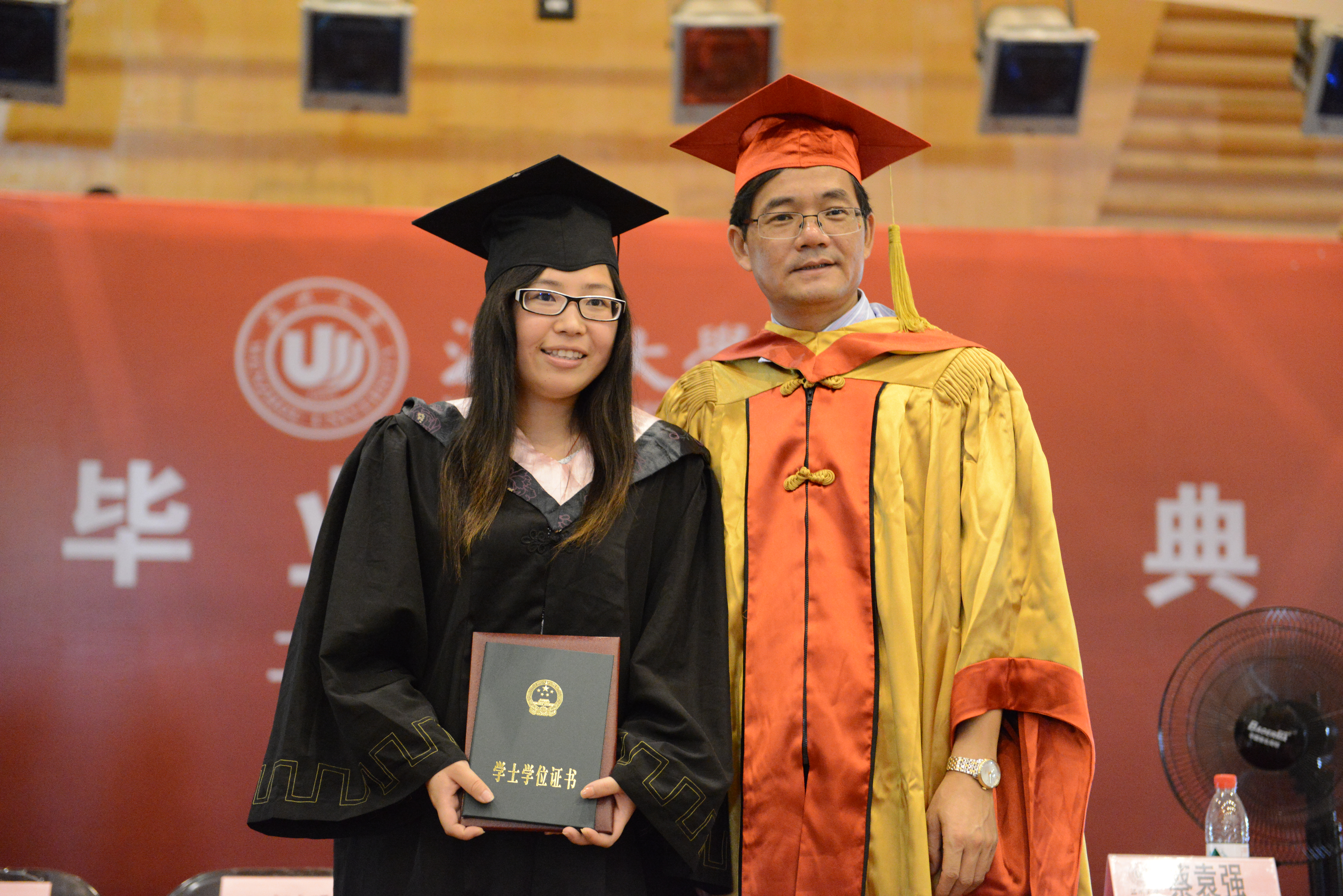 校长蔡袁强教授亲自为每位毕业生颁发毕业证书及学士学位证书并合影留念使整场毕业典礼达到高潮。蔡校长亲自为毕业生正冠拨苏,颁发证书,学位证书、毕业证书授予仪式整整持续了2个多小时,毕业生们被蔡校长深深感动,他们一起向蔡校长致敬,“蔡校长,您辛苦了!我们永远爱您,爱母校!”,道出了所有毕业生此时此刻的心声。
