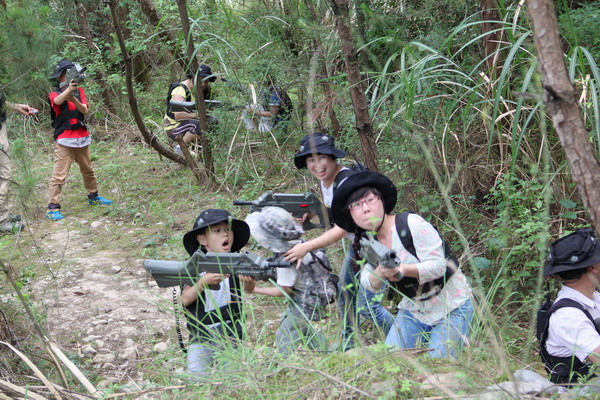 吃过午饭后,稍事休息,家长和孩子们被分成了2队,进行了激烈的真人CS对抗活动。在专业教练的指导下,2队通过热身,很快投入到了紧张刺激的对战当中。活动共进行了三局,前二局分别交换防守和进攻、第三局进行“斩首”行动——消灭对方队长即获胜。在活动中,对战双方团结协作,制定战术,玩得不亦乐乎。