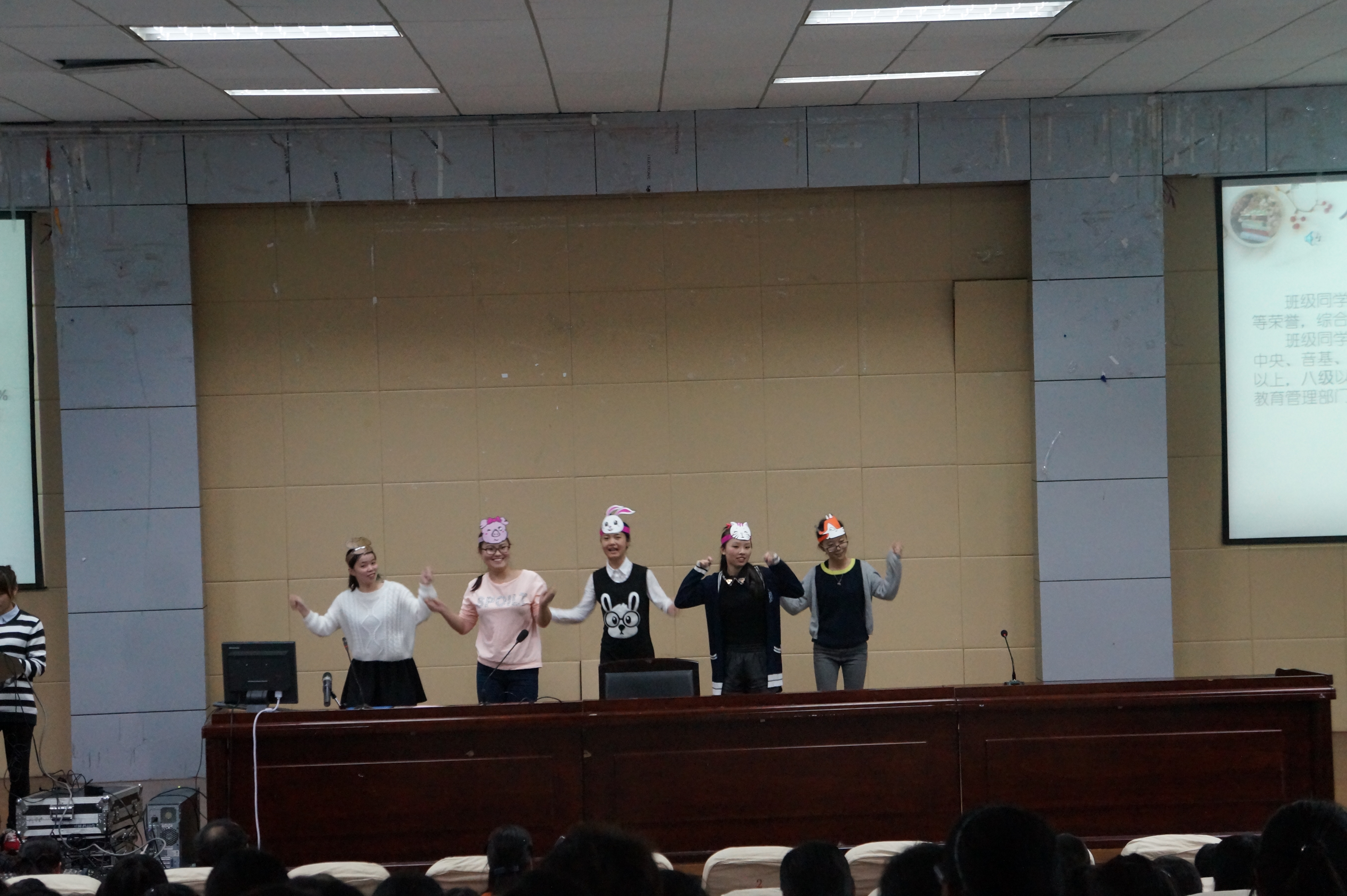 评选活动拉开帷幕。12小教数学班合唱的自编班歌,掀起了开场的第一个高潮。11小教科学班向我们展示了他们别出心裁的“五位一体”教师养成计划。13学前大专一班的班级特长队的T台秀、民族小组唱、孔雀舞和拉丁表演,又是一场别具一格的视觉盛宴。12小教中文班别致的班刊,加上同学们深情的演唱,深深打动了在场观众的心。12教技班独辟蹊径地采用了电台采访的方式。幽默诙谐的VCR为大家讲述了一个别样的“教技神话”,赢得台下雷鸣般的掌声。 而在优秀学生评选的环节中,通过同学们精彩的演讲,我们看到了他们最真实、最优秀的一面,也看到了他们闪光背后的忙碌与艰辛、一路的成长与坎坷。他们不仅个个成绩优异,而且在文体方面、工作方面以及志愿者服务方面都各有建树。