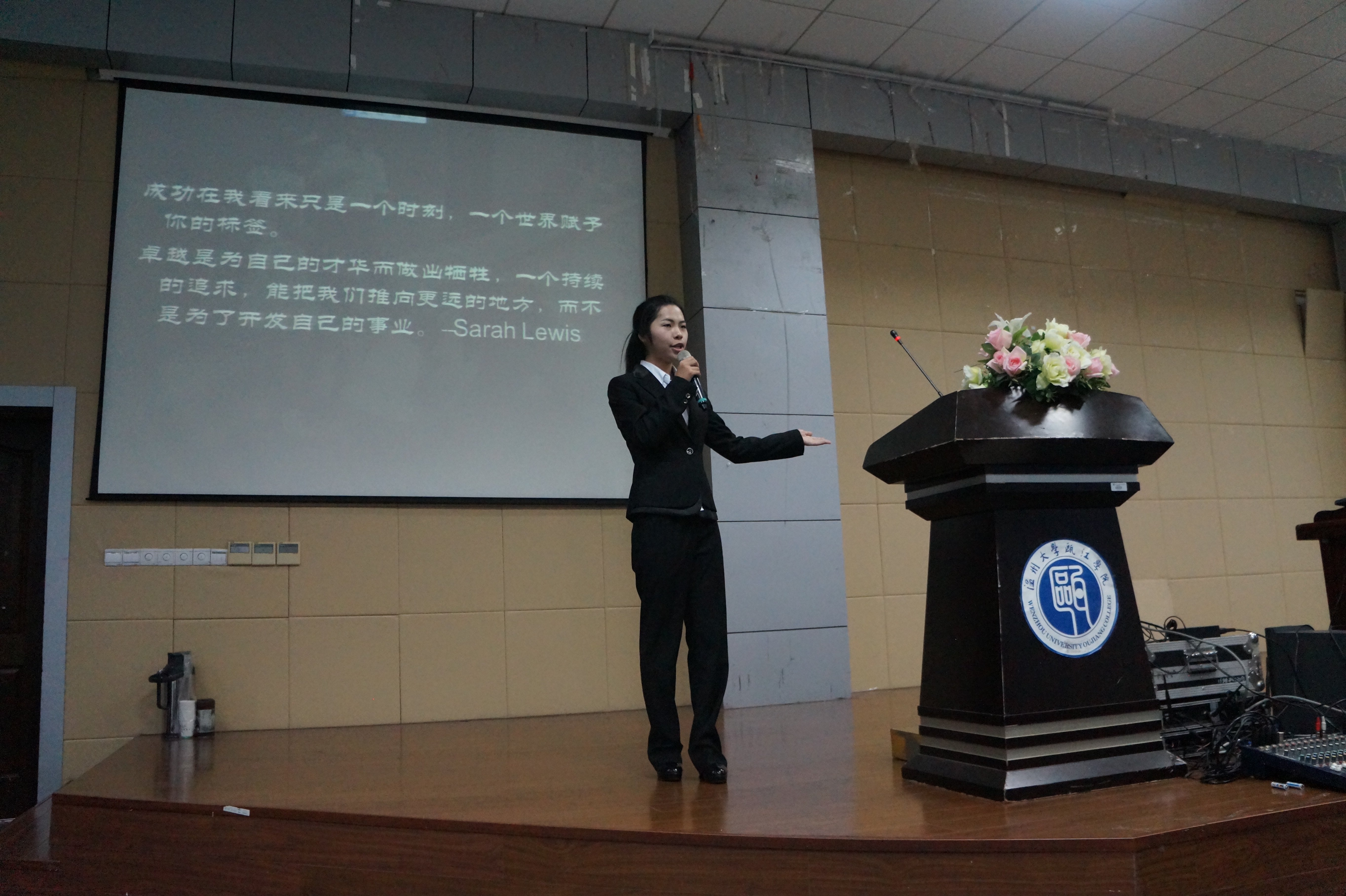 党总支副书记嵇小怡老师致辞。她指出此次评选是精品中的极品、是优秀中的典范、是风尚中的引领。所有参赛者均是通过了层层的选拔,在极低的通过率下遴选出来的,他们体现出了财神捕鱼