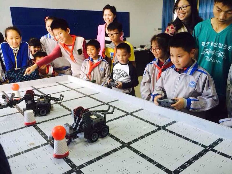 在智能机器人实验室,方建文老师热情演示,并让大家亲身体验操纵智能机器人夹取、移动及放置物体的过程。通过对智能机器人的体验,让孩子们充分感受到了智能机器人的无穷魅力,也增加了今后探究科学世界的兴趣和动力。