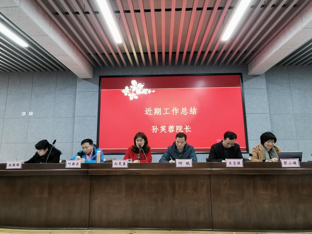 孙芙蓉院长作总结讲话。她通过三组关系,讲工作思路。一是做大和做通的关系;二是做长和做快的关系;三是做优和做严的关系。鼓励大家做事视野要广,主动对标并努力把成果做强。
