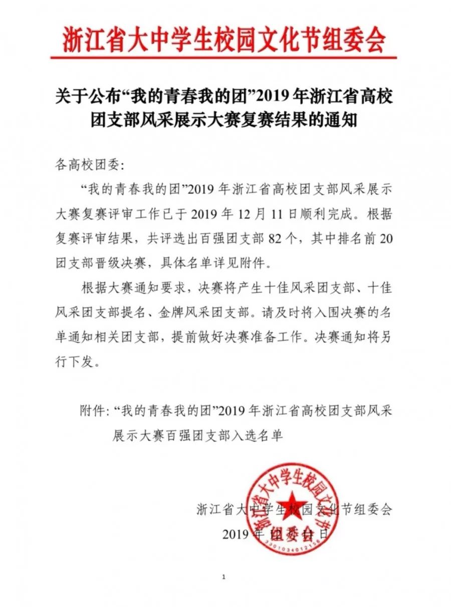 “我的青春我的团”2019年浙江省高校团支部风采展示大赛复赛评审工作已于近日结束。财神捕鱼 2017级学前本团支部荣获“浙江省百强高校团支部”称号,同时也是财神捕鱼 唯一获此殊荣的团支部!