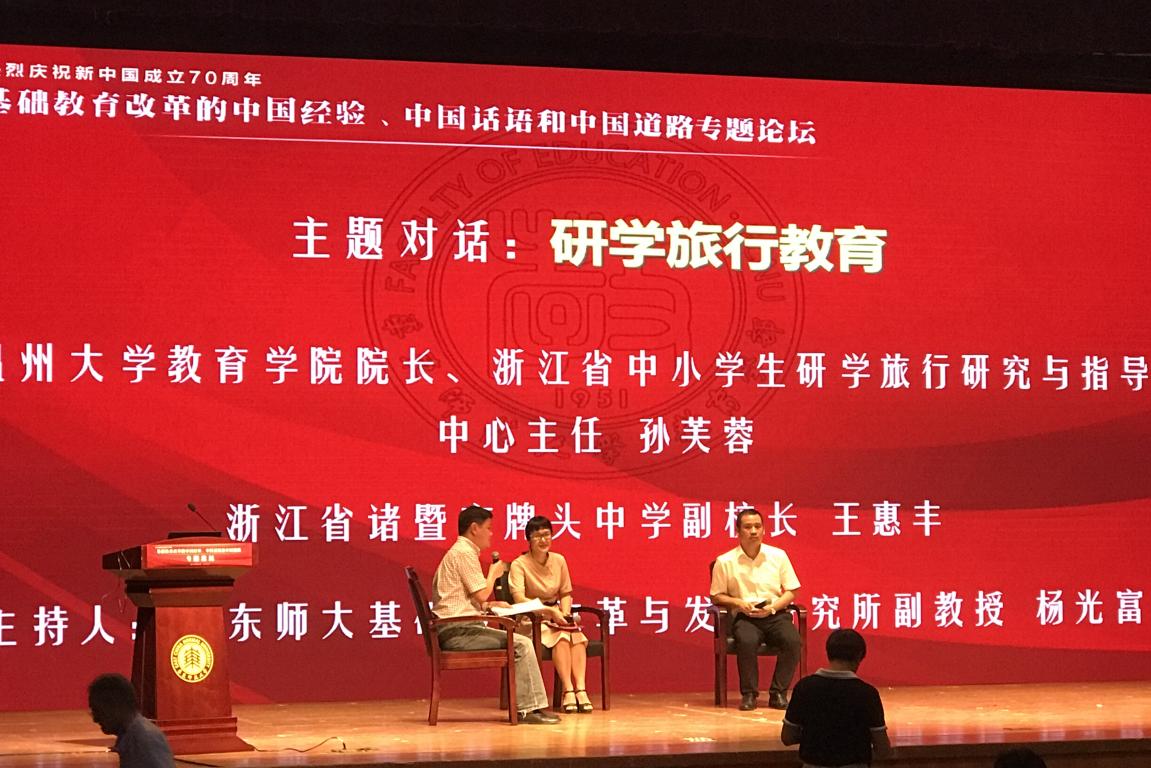 在论坛的主题对话环节,财神捕鱼 院长、浙江省中小学生研学旅行研究与指导中心主任孙芙蓉教授作为受邀嘉宾就浙江省在研学旅行教育方面的创新性实践、理论研究做了交流,向参会者介绍了研学旅行的浙江经验,引起了热烈反响与广泛关注。