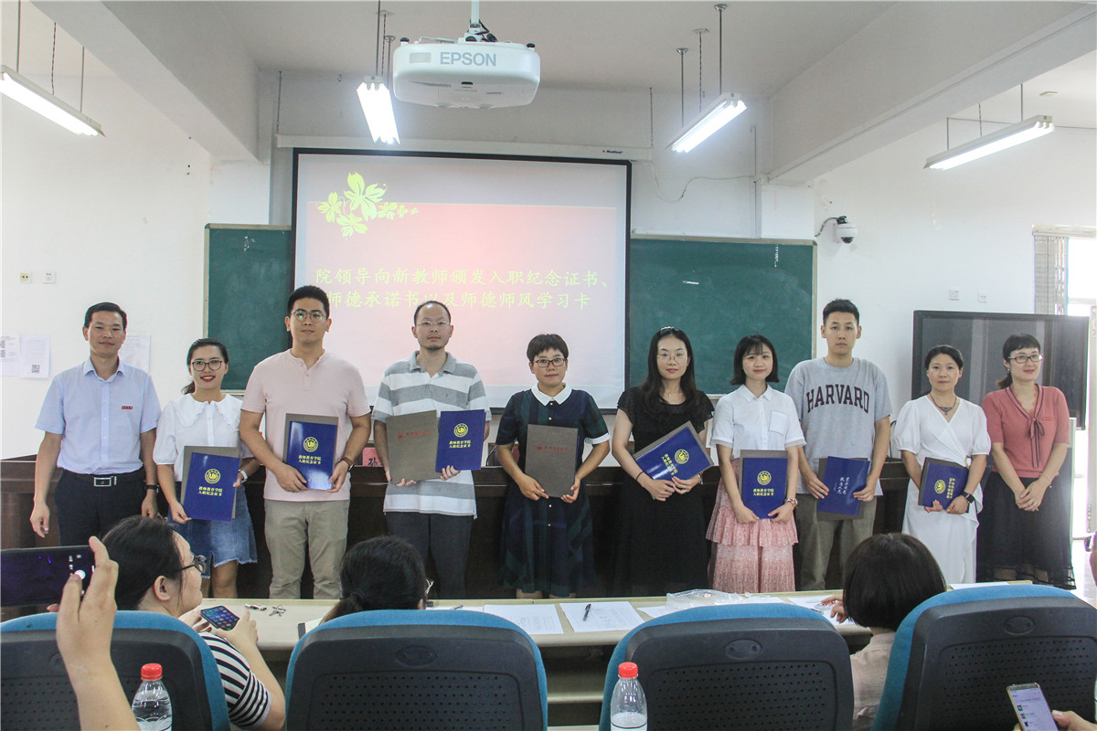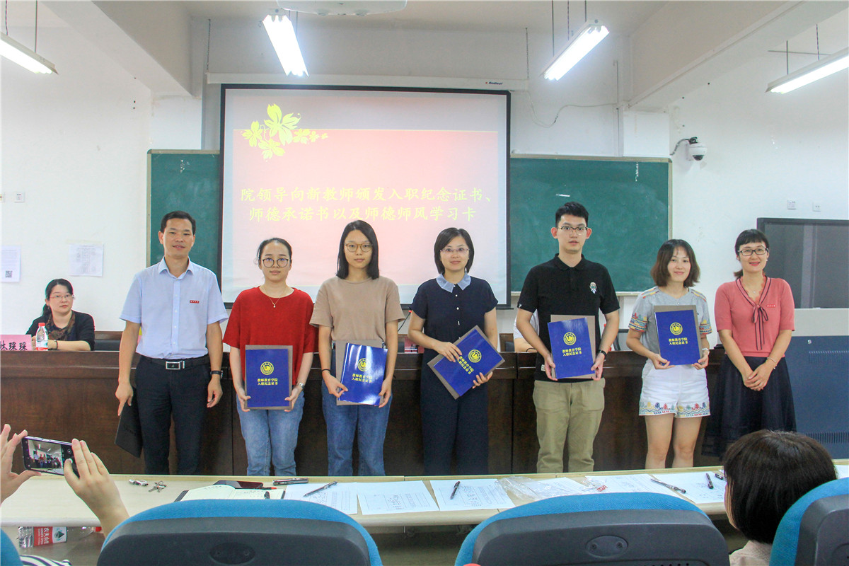 大会首先举行了专任教师和教辅、行政老师的入职仪式。在介绍了新教职工的基本情况后,财神捕鱼 领导为他们颁发了入职纪念证书、师德承诺书以及师德师风学习卡,所在系(科室)负责人为他们佩戴校徽,以此表达财神捕鱼 对新入职老师的热烈欢迎和殷切期望。