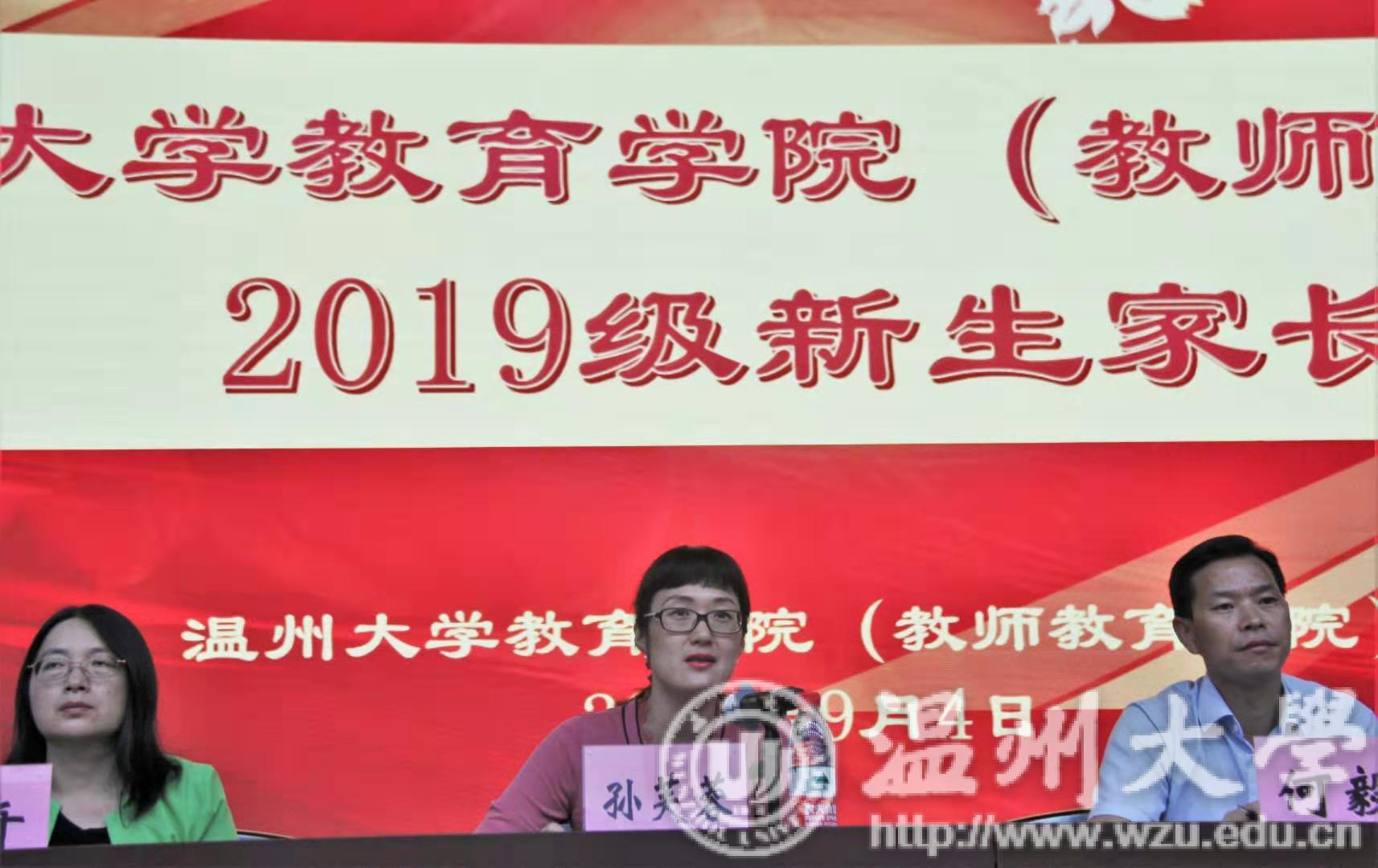 财神捕鱼 2019级新生家长会于9月4日下午在财神捕鱼 一楼报告厅举行。财神捕鱼 院长孙芙蓉,党委书记何毅,教育系书记周奇,应用心理系书记陈美芬,教育技术系书记李丽,小学教育系书记刘海霞,学前教育系书记陈旭微出席了本次会议,到场的还有各新生班级班主任,学工办主任严晓秋,学工办辅导员潘士杰、何奔奔以及2019级新生家长,此次家长会由党委副书记彭小媚主持。