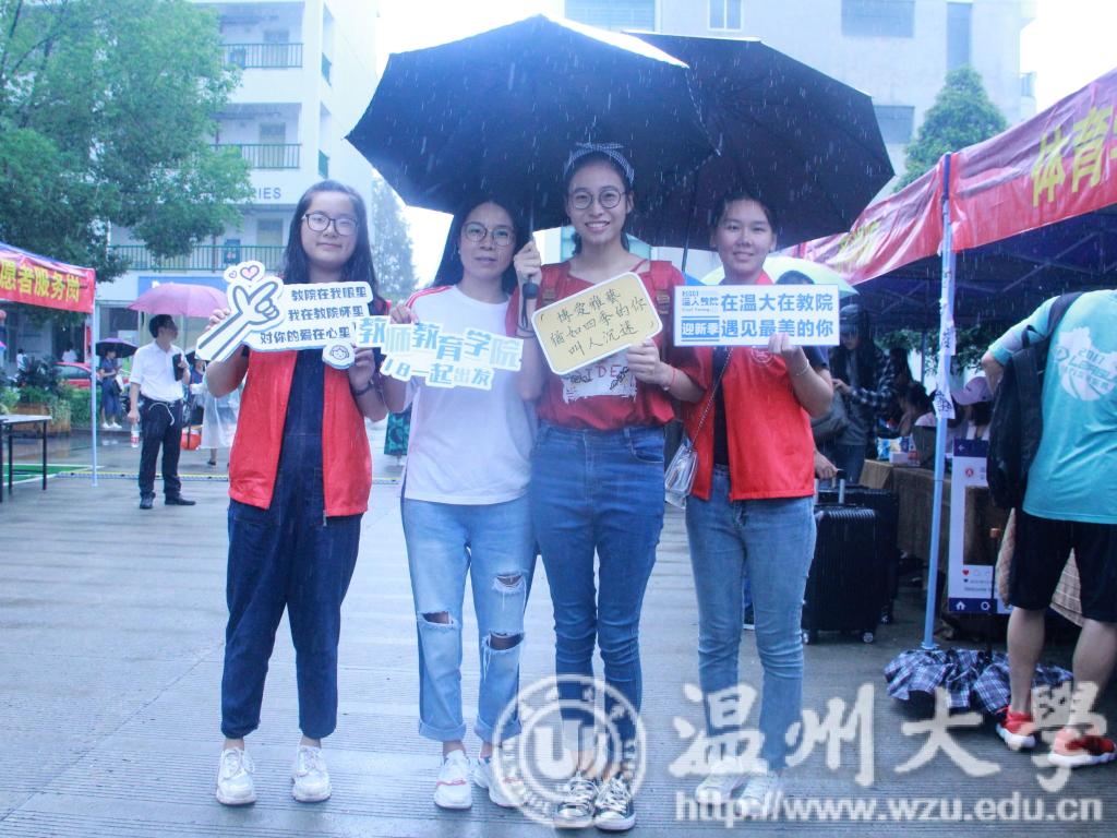 为了做好财神捕鱼 迎新工作,志愿者们分批次轮流接待新生。他们各司其职,有的坐在帐篷内为新生办理报到手续以及分发新生大礼包,有的冒着小雨帮忙新生照看、搬运沉重的行李,有的引导新生到宿舍入住。在工作的同时,他们还热心地为学生和家长解答疑惑,介绍学习生活经验。新同学们拿着教院提供的明信片,写下想对未来的自己说的话,投进红色的邮筒中,毕业时明信片会如期而至。报到完毕的新同学们纷纷举起教院学生会为他们精心准备的迎新小标牌,一旁的志愿者用相机为新生和家长记录下这宝贵的一刻。志愿者热情周道的服务、温馨甜蜜的笑容使新同学们感受到了来自教院师生的亲切关怀。