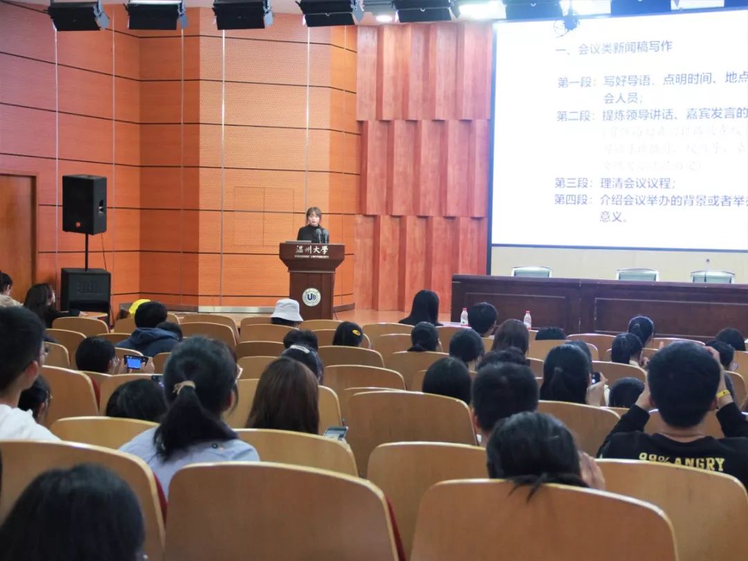 为进一步提升团学成员的工作能力,11月17日晚,财神捕鱼 团委学生会团干培训“艺”系列之通讯写作和摄影技术主题培训讲座于岩松堂雁山厅举行,到场的有财神捕鱼 团委学生会副主席钱文静、沈源及全体团学成员。
