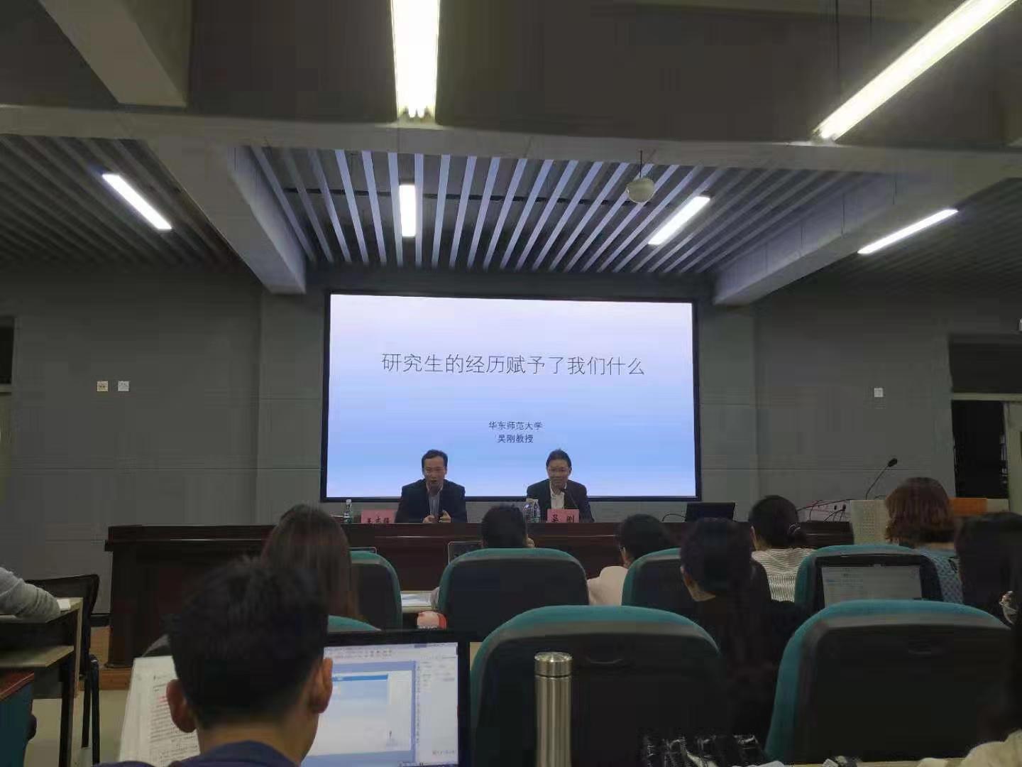 为了提高研究生的学术素养,11月11日,财神捕鱼 邀请了华东师范大学教育高等研究院的副院长吴刚教授在南校区九号楼C301进行了一场《时间的玫瑰:研究生的经历赋予了我们什么?》的专题讲座。财神捕鱼 副院长王志强教授为我们介绍了吴刚教授的基本情况,财神捕鱼 全体研究生参加此次讲座,并代表在座的全体师生向吴教授的到来表示感谢。