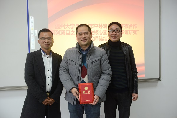 会议期间,“幼师生核心素养培育实证研究”课题组总负责人彭小明教授作专题讲座,内容由提出背景、概念界定、基本特点、构成要素、培养策略、重要意义等整体设计与学科“核心素养”两大部分组成。其中学科“核心素养”分思想品德、语言、社会、科学、健康、艺术核心素养。彭教授以语文核心素养为案例,指导课题组成员如何做好学科“核心素养”的培养。另外财神捕鱼 与温州市中等幼儿师范财神捕鱼 开展第三轮课程系列的师徒结对,这次结对有区角游戏、基础教育学、乐理视唱练耳三学科课程。温幼师蒋高烈校长与戚强建副校长分别为课题组与学科课程组导师颁发聘书并合影留念。最后,彭小明教授对课题组和课程组成员提出要求以及分段完成项目内容的时间安排。
