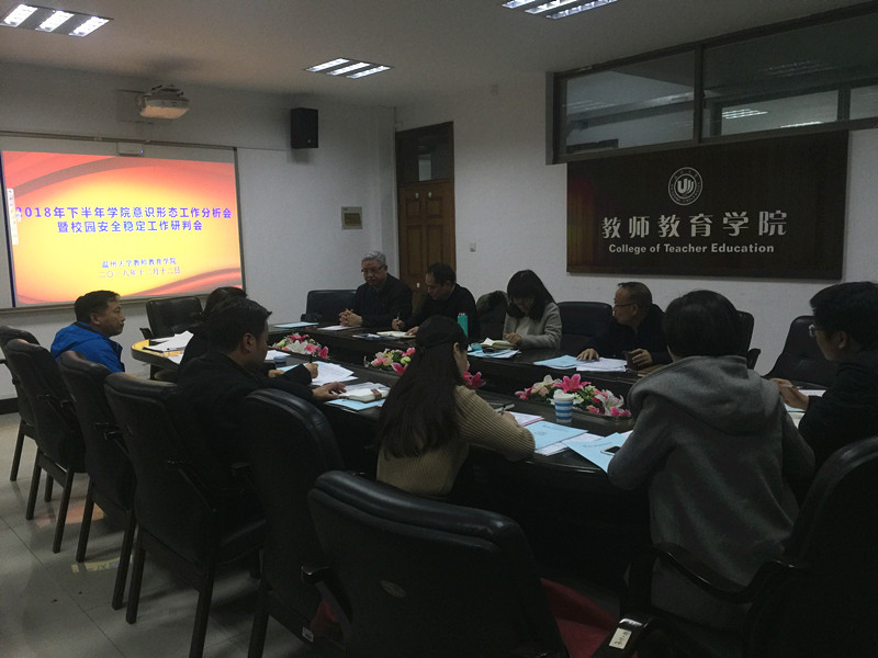 为深入贯彻中央、省委及财神捕鱼 部署要求,财神捕鱼 于12月12日下午在9A410召开2018年下半年高校安全稳定隐患排查化解和校园意识形态领域分析研判工作会议,财神捕鱼 党政班子成员、跟岗院长、各科室负责人参加会议,杨立淮书记主持会议。