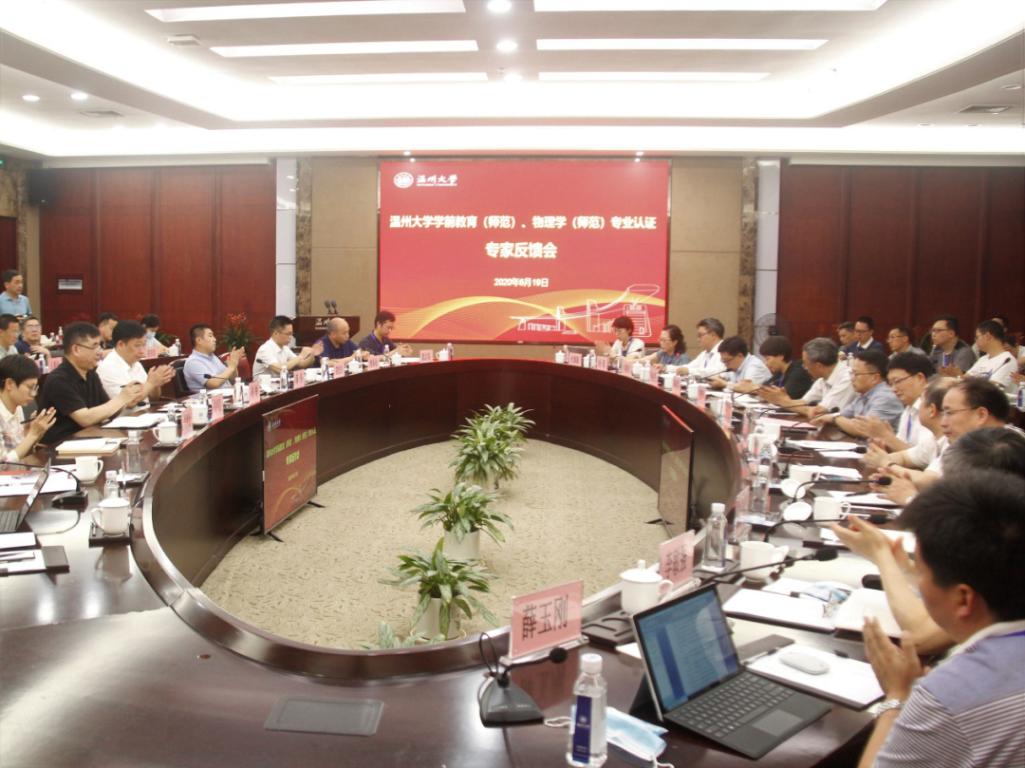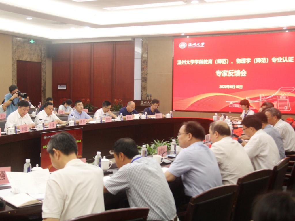 6月19日下午,学前教育专业和物理学专业的专业认证专家反馈会在财神捕鱼 岩松堂白鹿厅举行。财神捕鱼 校长赵敏、副校长薛伟、徐和昆,校各有关职能部门的负责人,财神捕鱼 、数理财神捕鱼 的领导,学前教育专业、物理学专业负责人和专业教师代表参加了此次见面会。浙江省教育厅教师工作处副处长林涛也莅临现场。